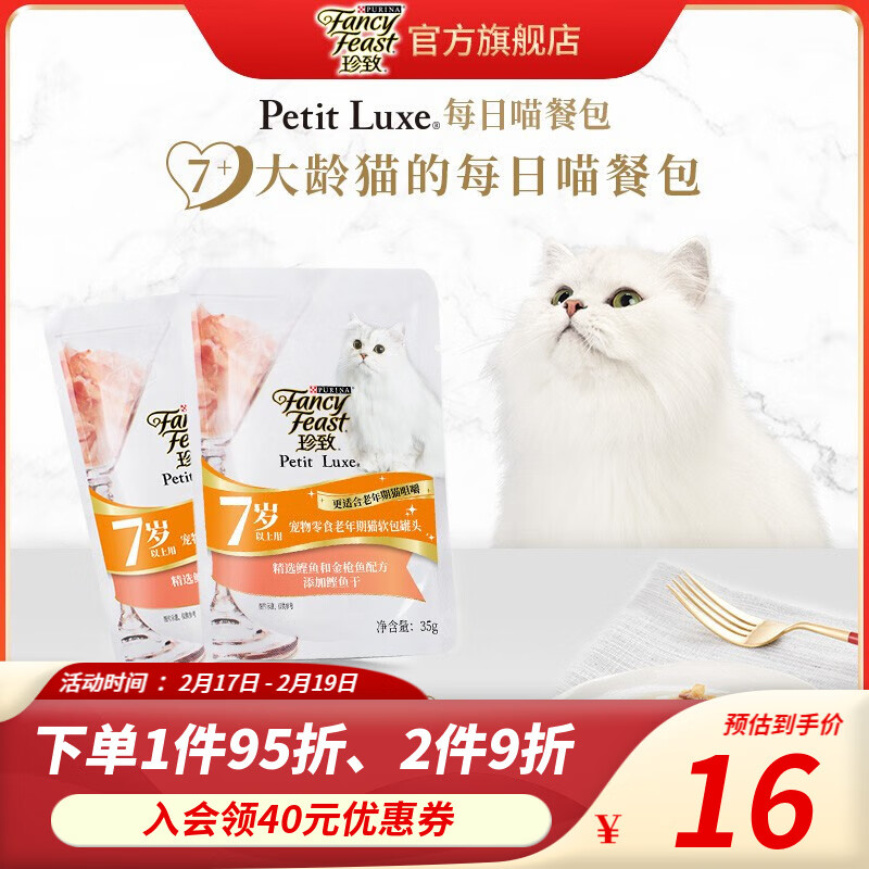 珍致 FancyFeast 每日餐包 精选鲣鱼配方整盒装 猫咪软罐头 浓郁高汤猫零食 35g*2 7 老年猫(鲣鱼和金枪鱼 鲣鱼干)