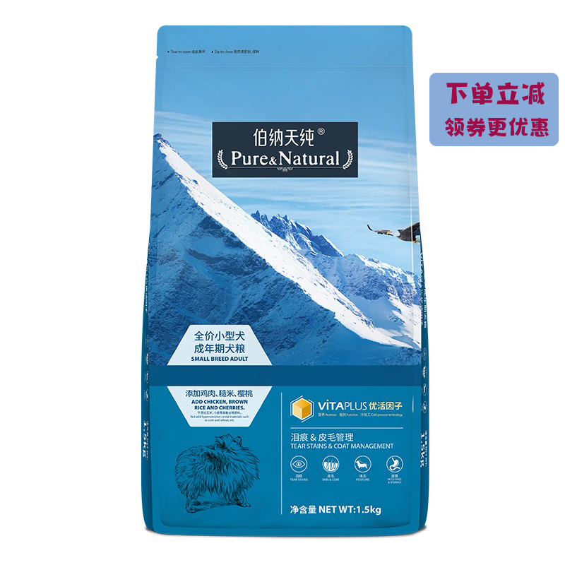 伯纳天纯狗粮小型犬中大型犬粮金毛比熊柯基边牧贵宾成犬幼犬全价粮 小型犬成犬粮1.5kg