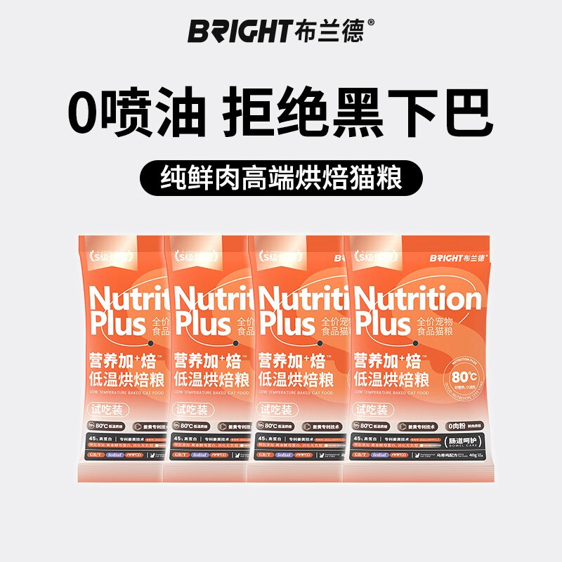 布兰德5s低温烘焙猫粮鲜肉粮全价通用成猫幼猫粮黄金蛋白布偶干粮 160g(4包试吃装) 乌骨鸡配方