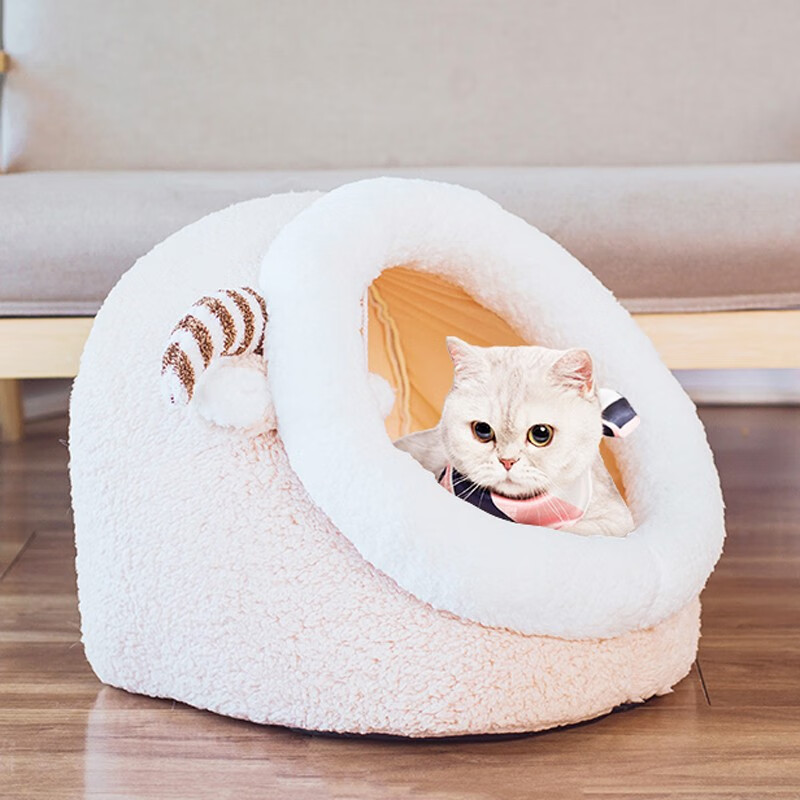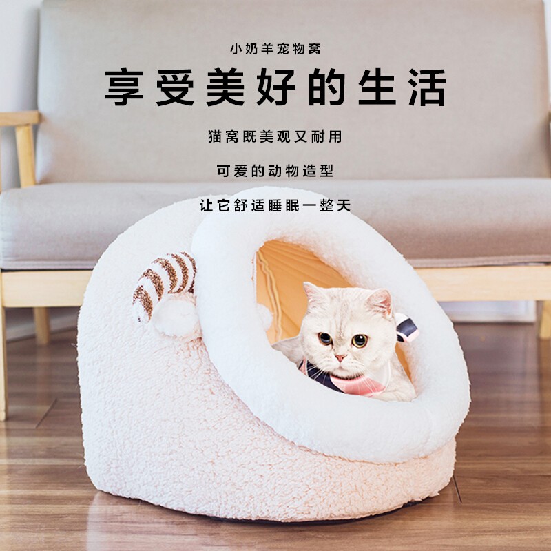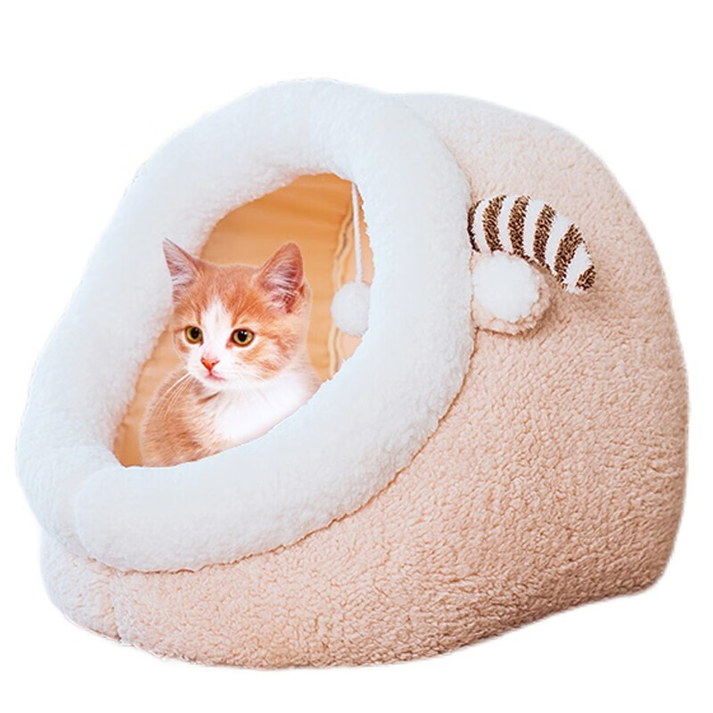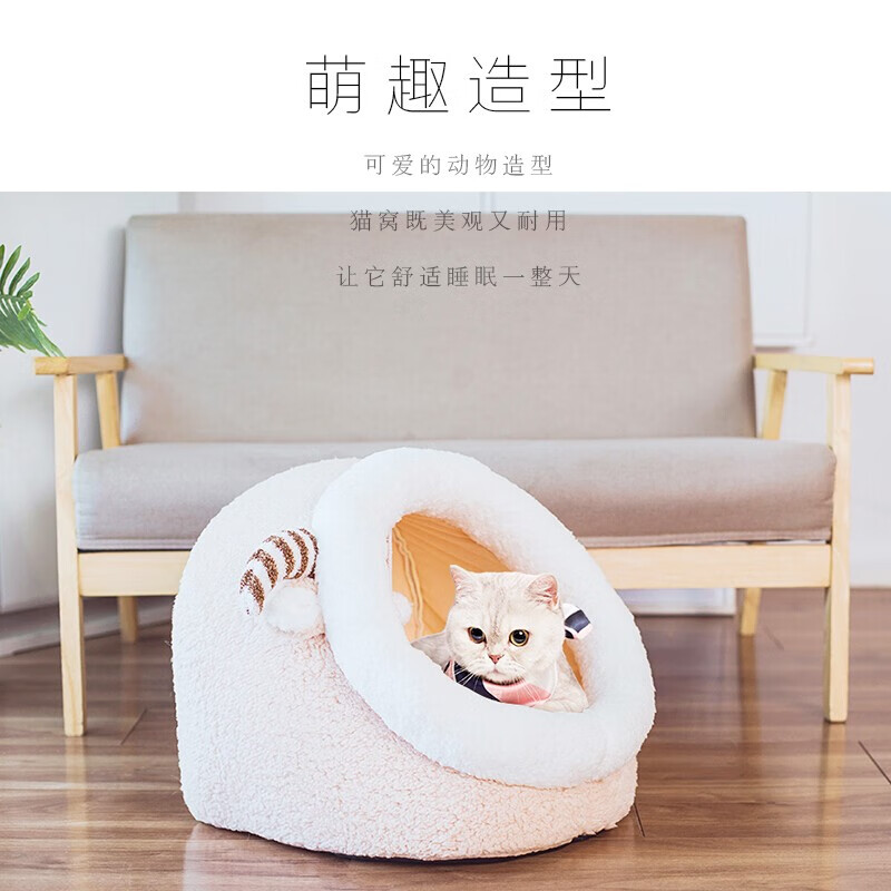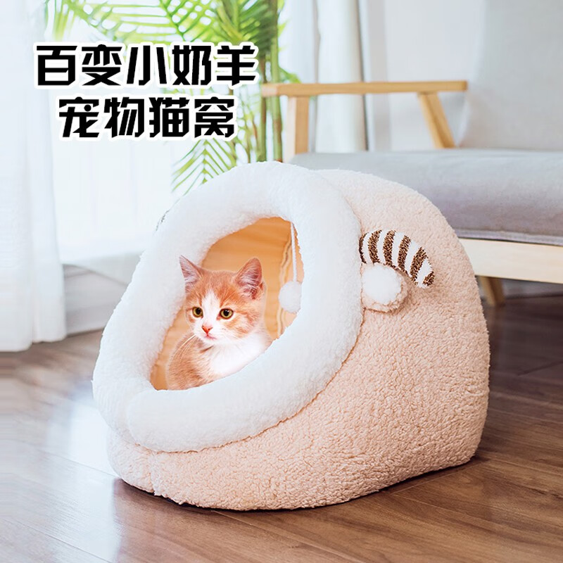 坏小宠猫窝四季通用冬季保暖狗窝封闭式网红猫屋猫床网红狗窝小型犬幼犬狗垫子可拆洗宠物用品 驼色小奶羊S号(7斤猫咪/5斤狗狗)