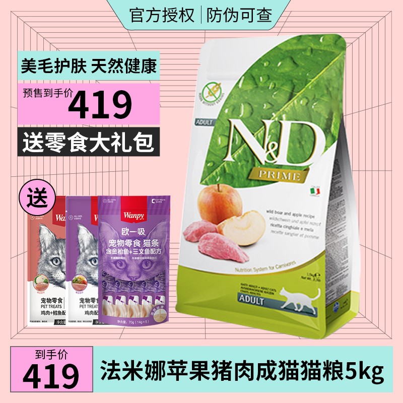 FARMINA法明娜法米娜鱼鸡肉低敏天然猫粮成猫大袋猫食 成猫猪肉苹果5kg