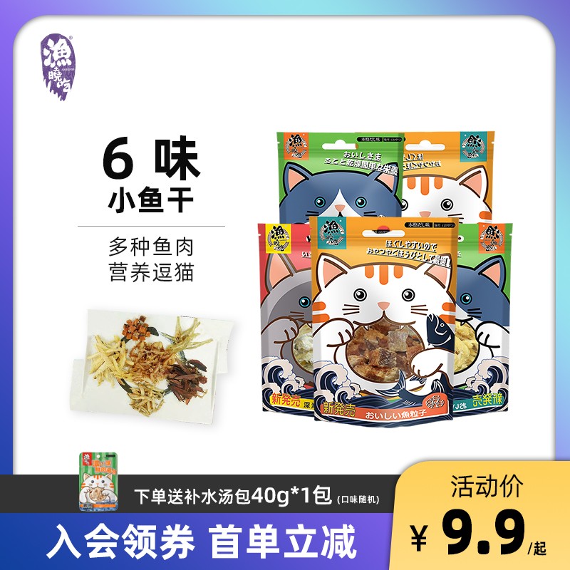 渔晓吃大礼包 小鱼干猫薄荷饼干喵餐包宠物猫咪零食三文鱼粒成猫幼猫零食 手切三文鱼粒*1包