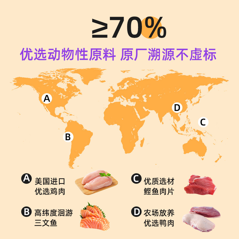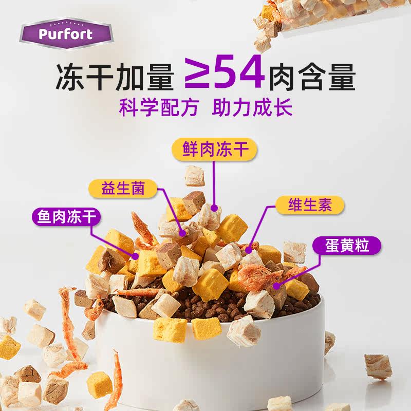 Purfort六拼冻干猫粮全价成猫粮营养无谷鲜肉猫咪主食500g试吃装