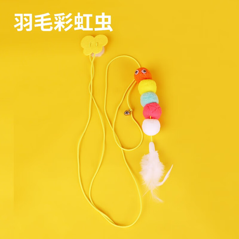 柒哦猫玩具逗猫棒猫咪自嗨解闷夹门玩具响纸球猫悬挂绳宠物猫咪玩具用品 羽毛彩虹虫