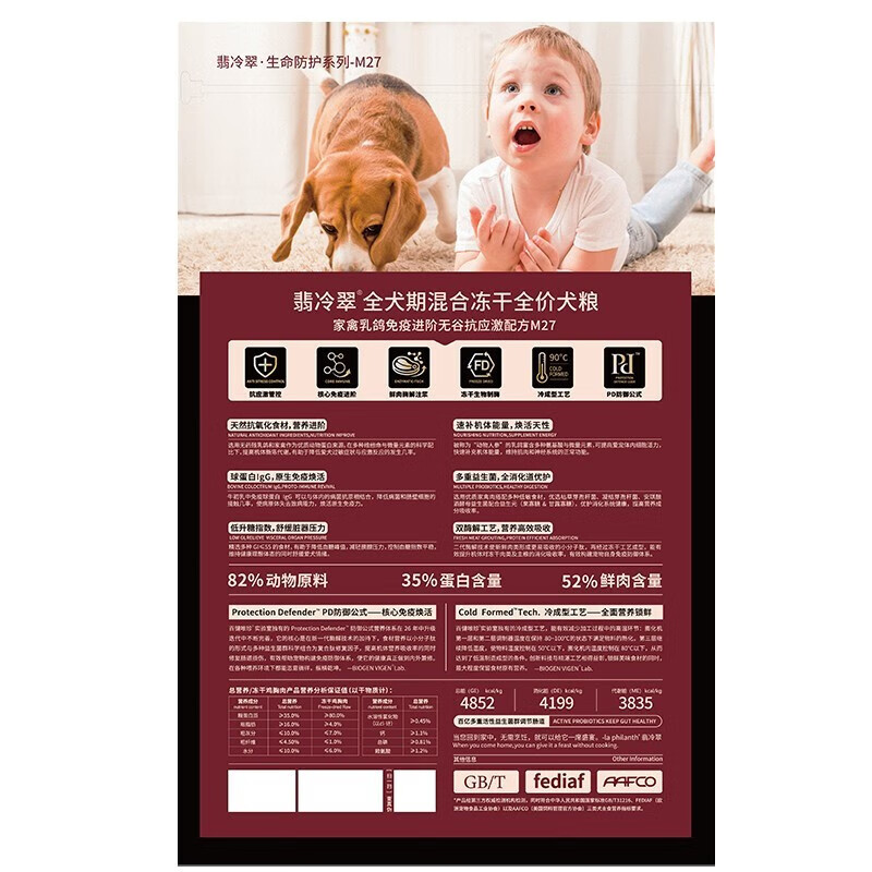 翡冷翠M系列狗粮冻干鸡胸肉低敏无谷配方全期犬粮全阶段适用 M27家禽乳鸽全价犬粮5.45kg