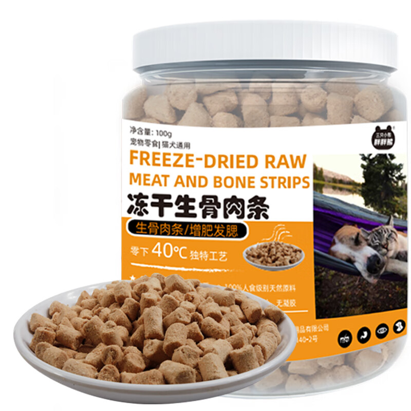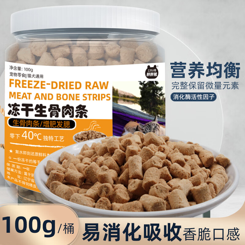 殊福傢三只小熊冻干生骨肉主食小桶装宠物粮猫咪零食营养增腮磨牙成幼猫 甄选冻干生骨肉100克/1桶