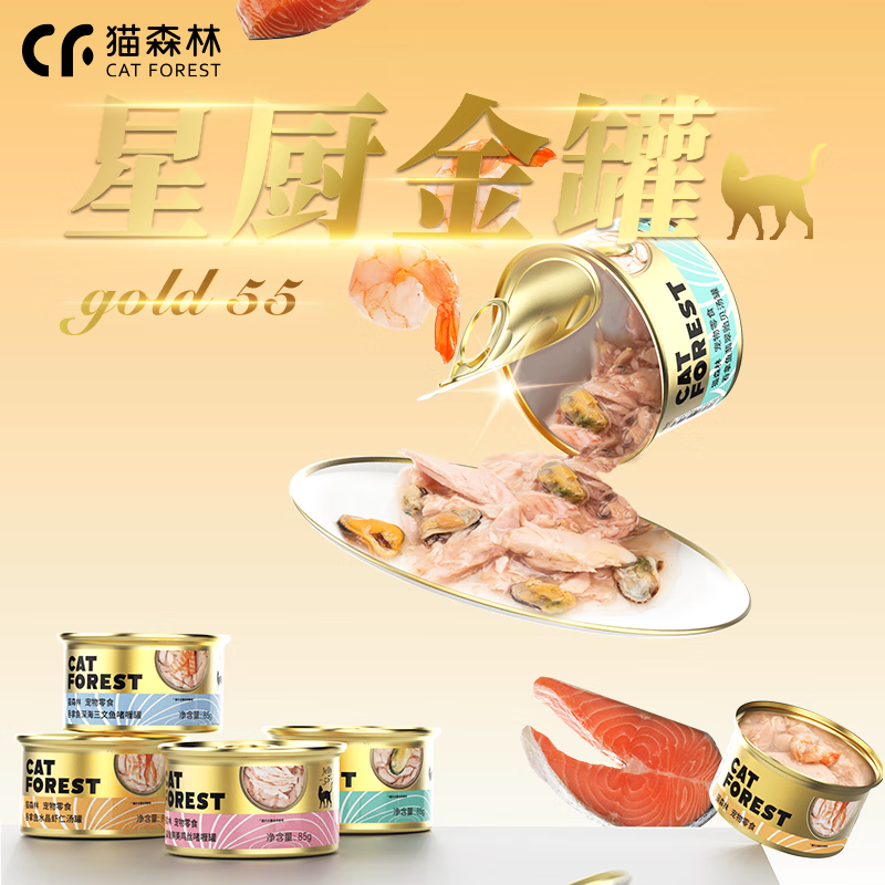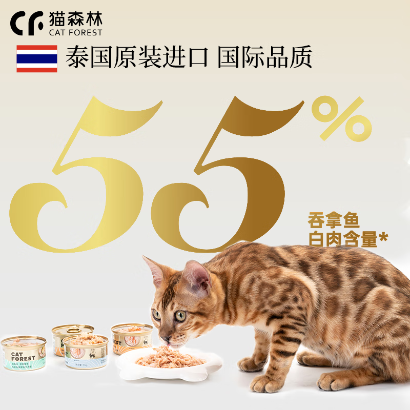 猫森林猫罐头猫咪零食成猫幼猫营养白肉主食罐进口24罐整箱 【55%鱼肉】进口升级款吞拿鱼 虾仁汤罐24罐