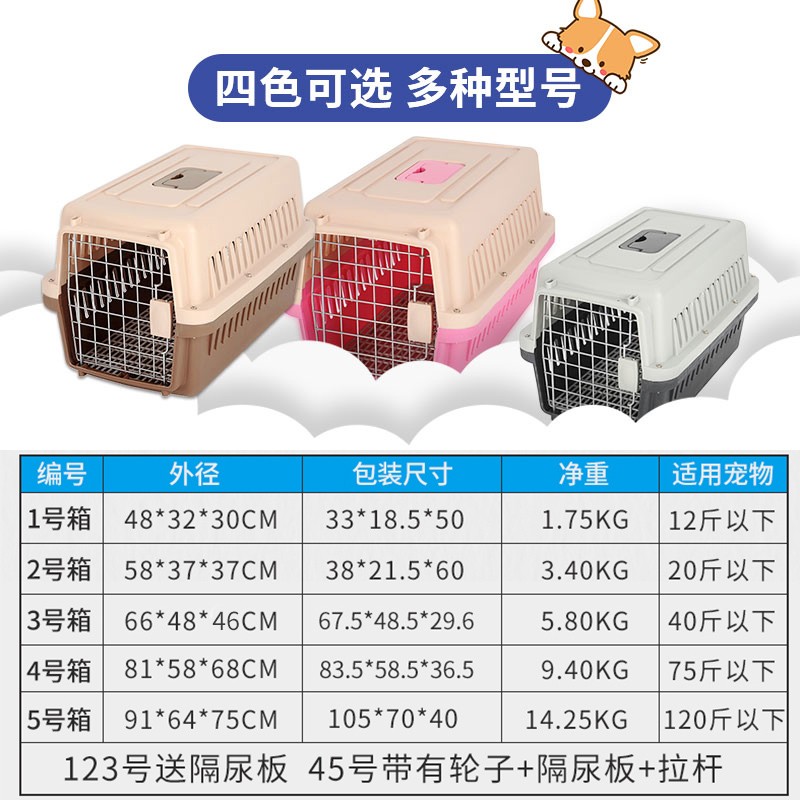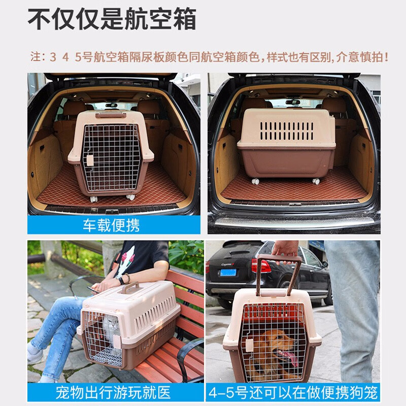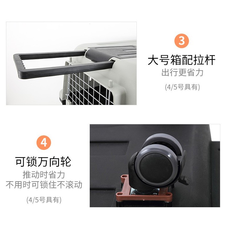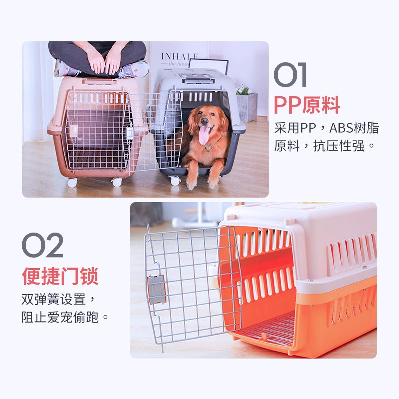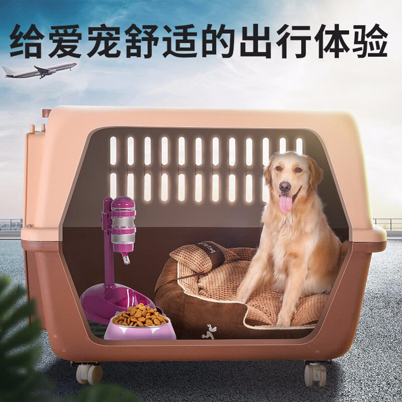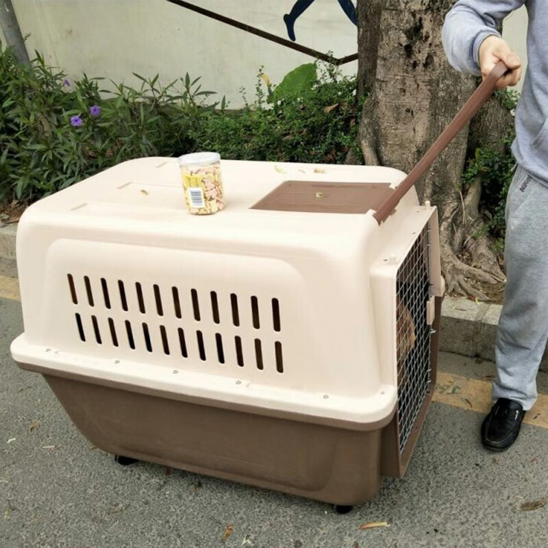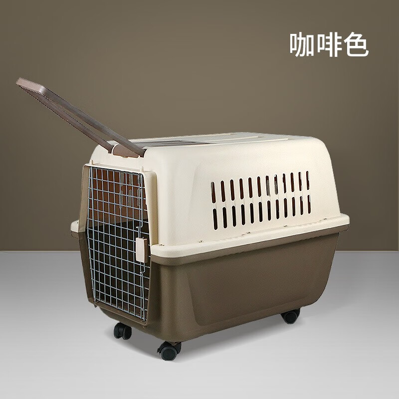 hoopet宠物狗狗航空箱便携式金毛哈士奇萨摩拉布拉多宠物托运箱运输中大型犬狗狗笼子托运笼子 咖啡色-带拉杆 五号航空箱(120斤内犬)