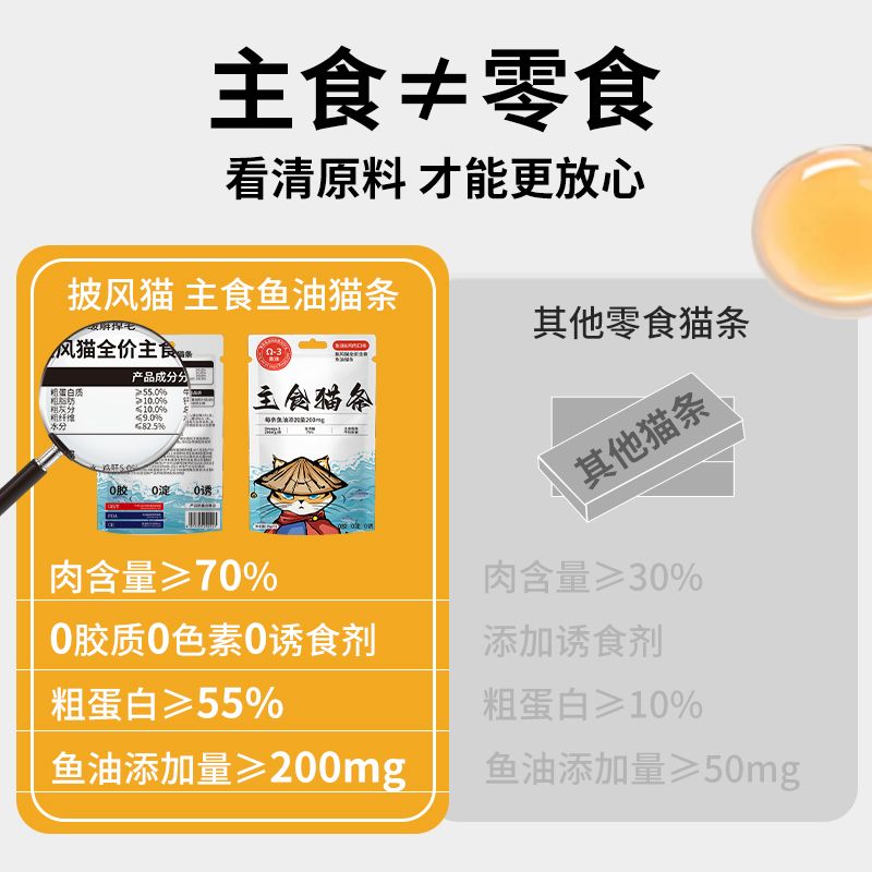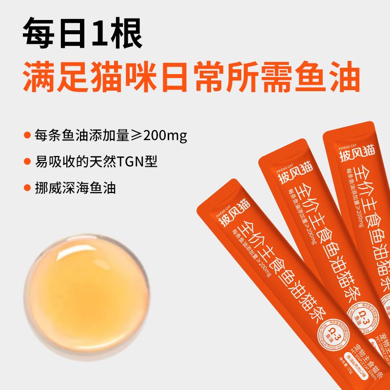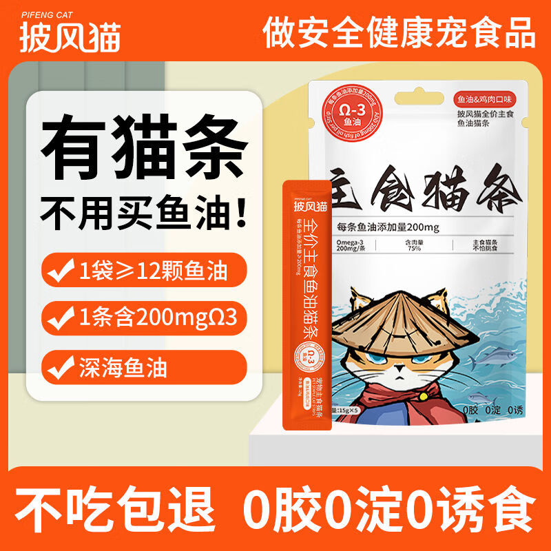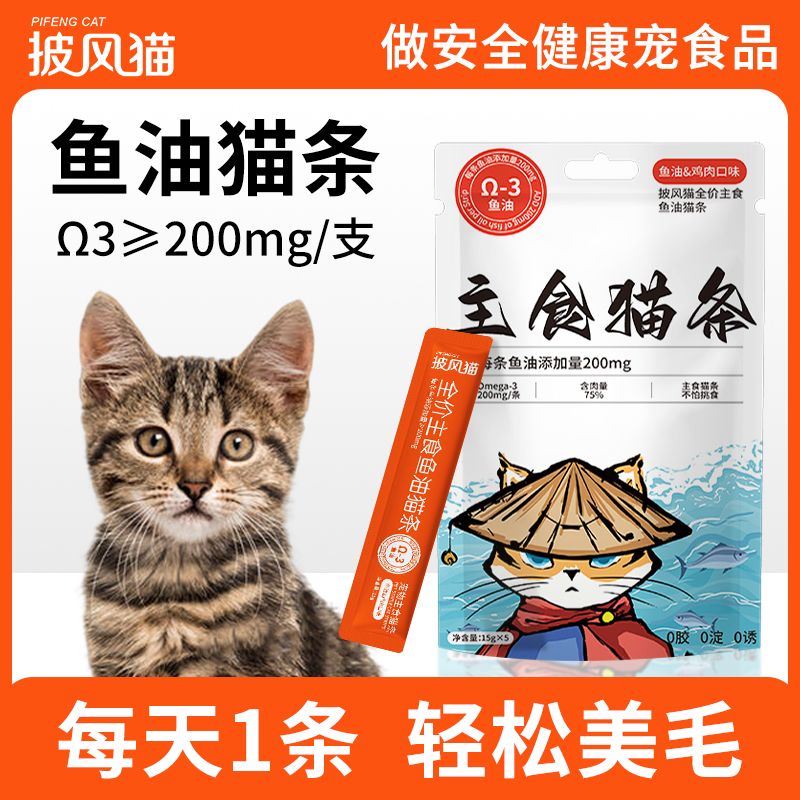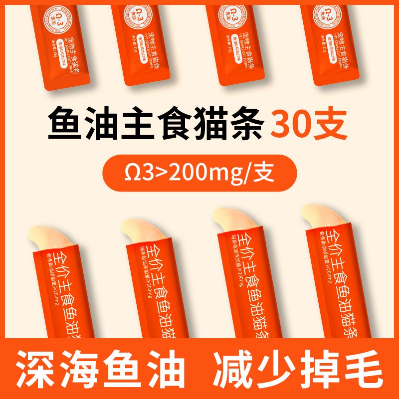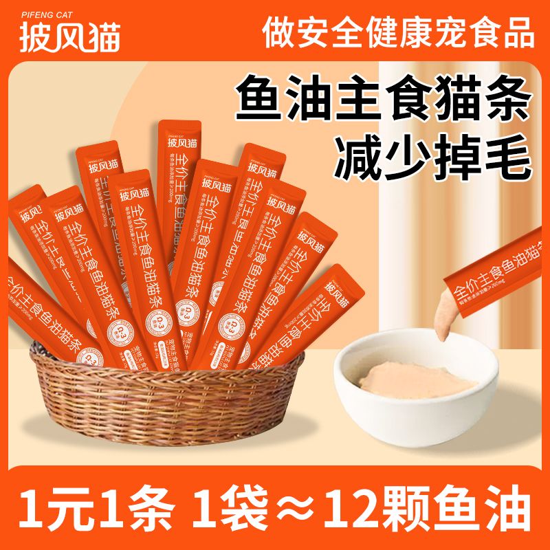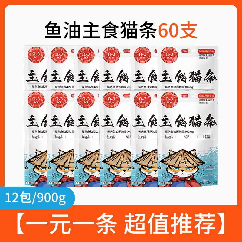 万物一口鱼油主食猫条全价纯肉0添加猫零食Ω3防掉毛增肥发腮湿粮罐头猫咪 鱼油主食猫条60条【90%顾客选择6