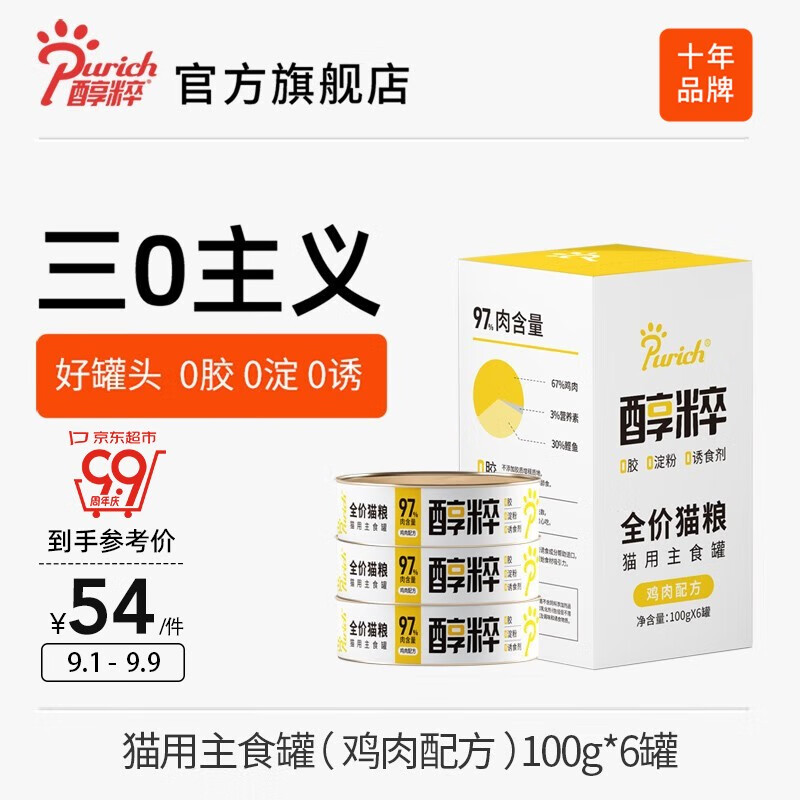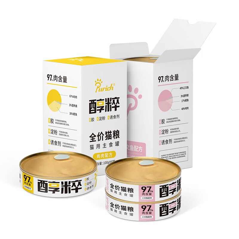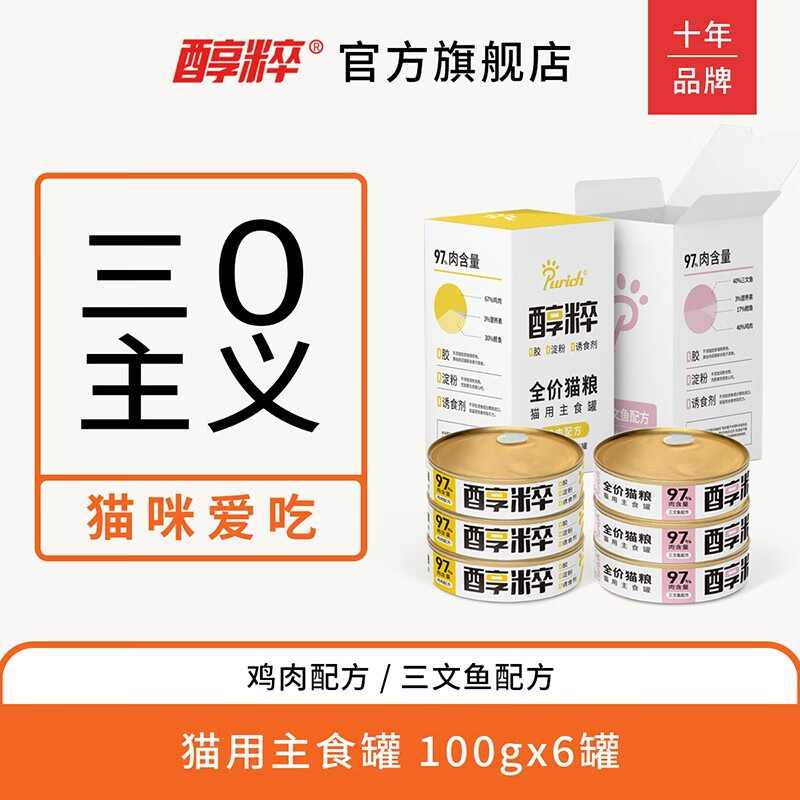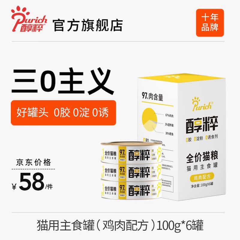 醇粹猫罐头湿粮 冻干生骨肉全阶猫咪主食罐头 鸡肉味*6(6罐一盒) 3盒