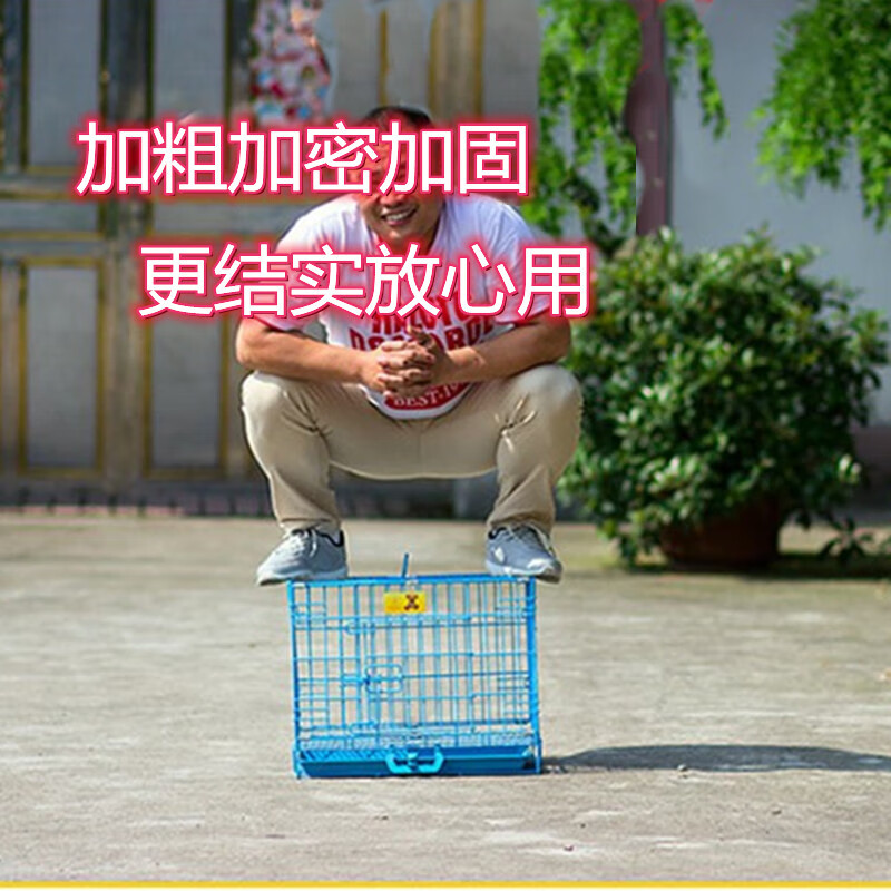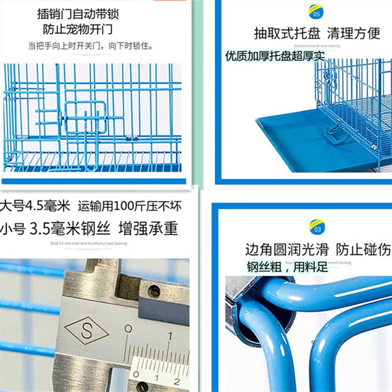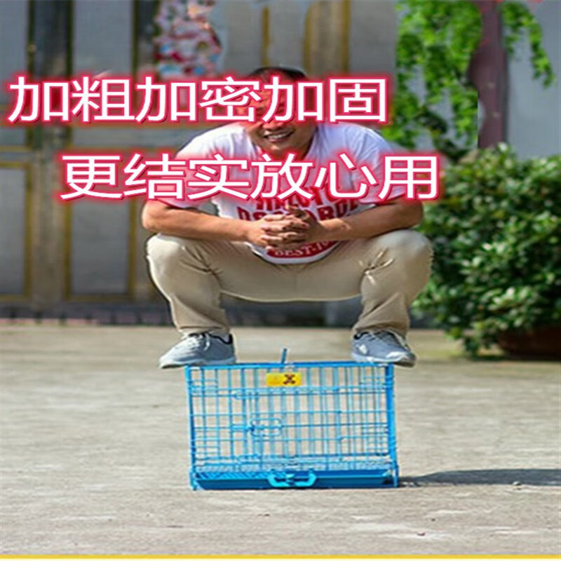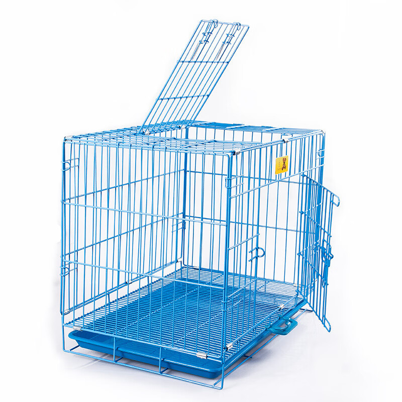 栗好嘉便携加固加粗宠物狗笼子折叠泰迪家用活物猫笼车载小型中型大型犬 蓝色笼 托盘 加粗长50宽36高42cm