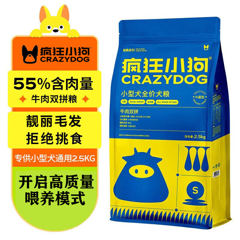 疯狂小狗小型犬全价狗粮双拼小蓝包犬粮贵宾比熊博美去泪痕挑嘴粮 [主推款]小型犬牛肉双拼2.5kg