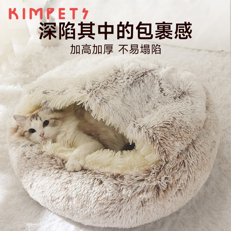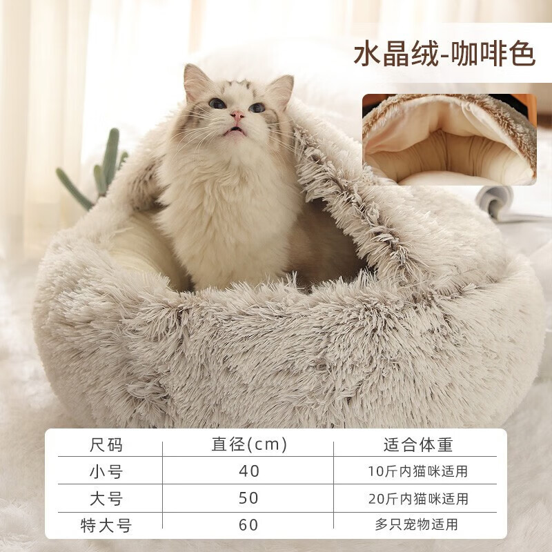 KimPets猫窝四季通用宠物小猫咪屋被子冬季保暖猫狗窝冬天用品封闭式猫床 柔制水晶绒(咖啡色) 柔软包裹 直径60cm,适合30斤内宠物