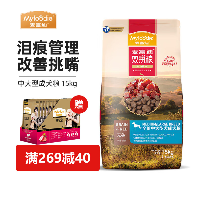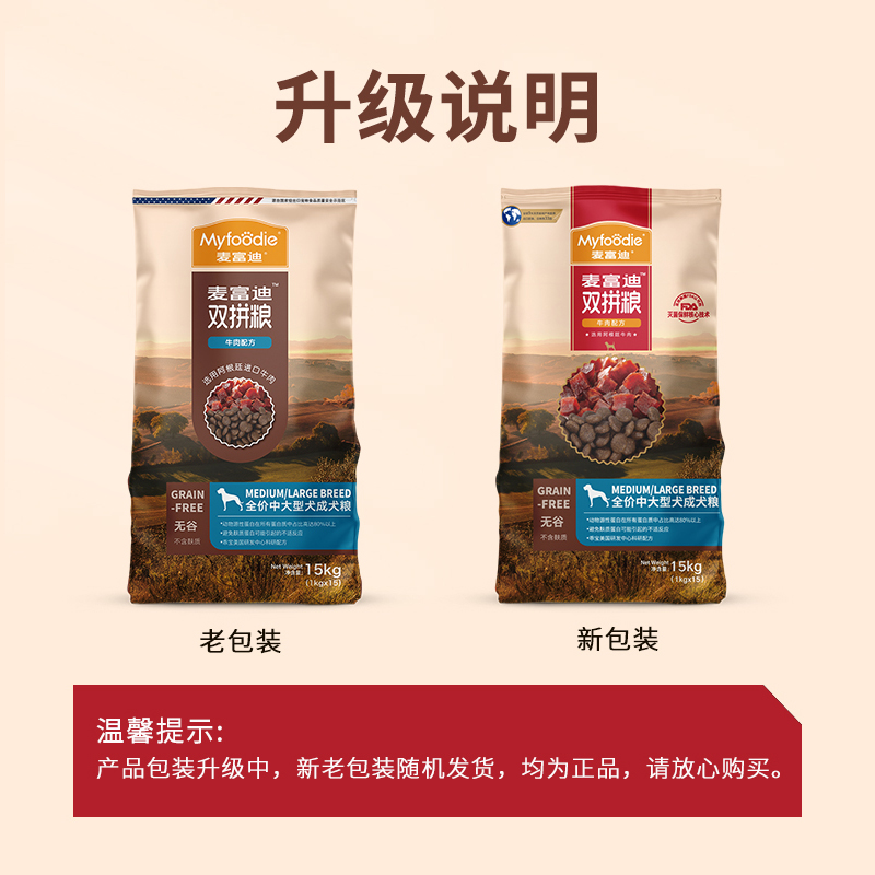 麦富迪狗粮 无谷牛肉双拼粮 成犬中大型小型犬通用金毛泰迪柯基 中大型犬成犬粮15kg