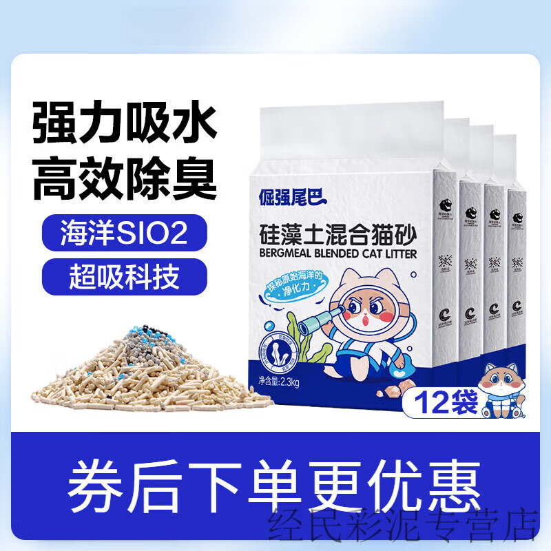 倔强的尾巴硅藻土混合猫砂膨润土混合猫沙囤货2.3kg*12包 硅藻土猫砂2.3kg*12袋