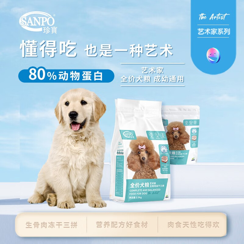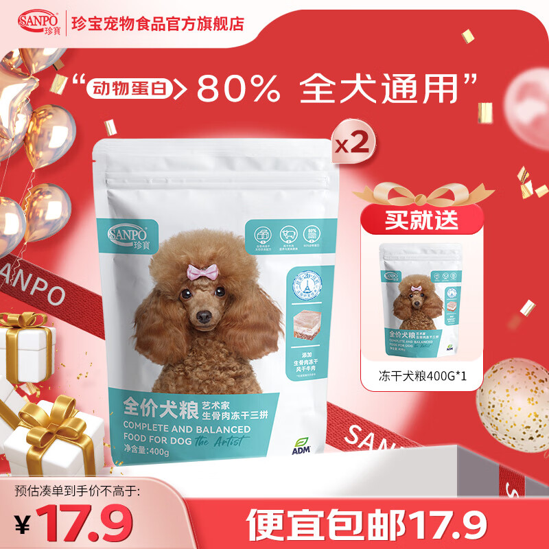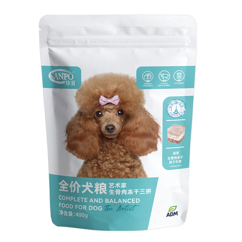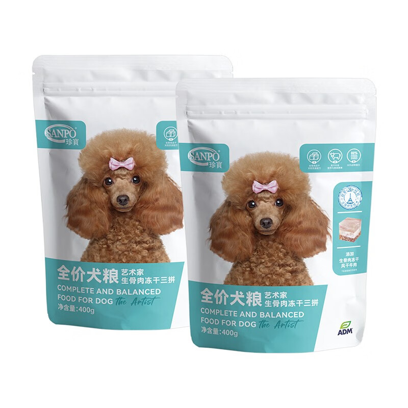 珍宝(SANPO)【24年4月到期】ADM珍宝冻干狗粮 生骨肉冻干三拼成年幼年犬粮 400g*2袋 全犬通用