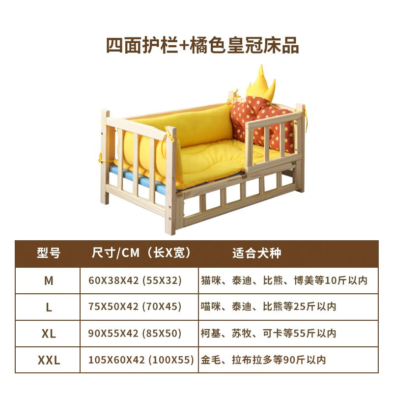 藤印象泰迪狗窝可拆洗宠物狗床木床大型小型犬猫窝四季通用冬天保暖用品 护栏款 橘 黄色 【XL:90*55cm】50斤内