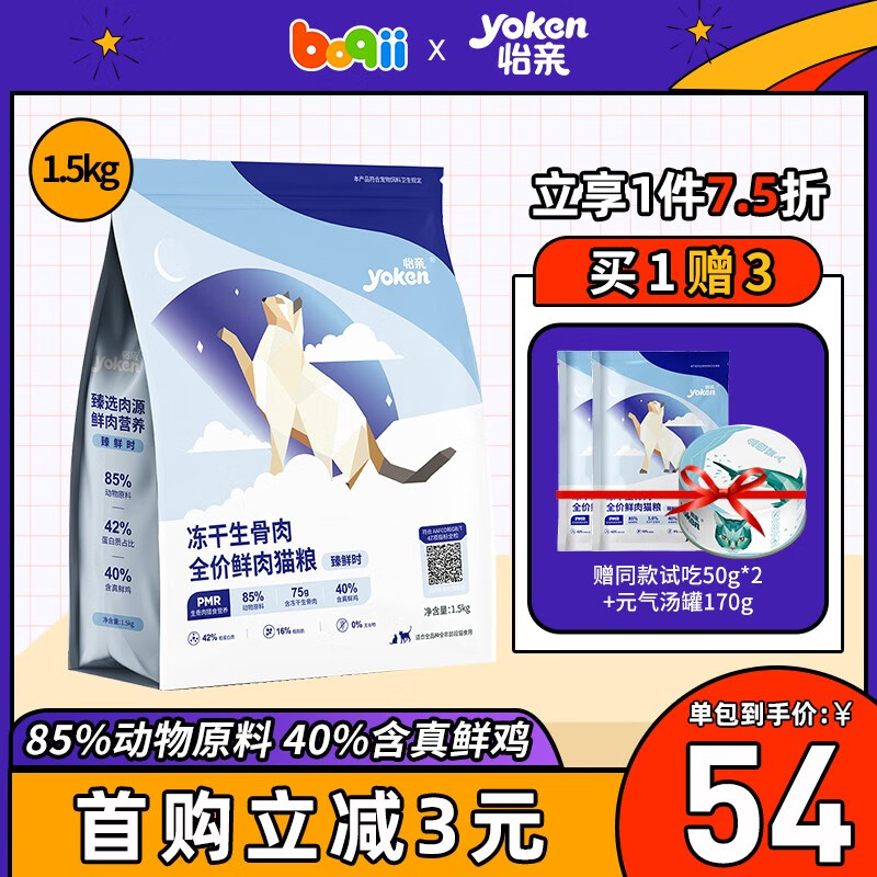 怡亲(Yoken) 冻干生骨肉猫粮 臻鲜时系列全价全期猫咪鲜肉主粮 幼猫成猫老年猫通用 1.5kg