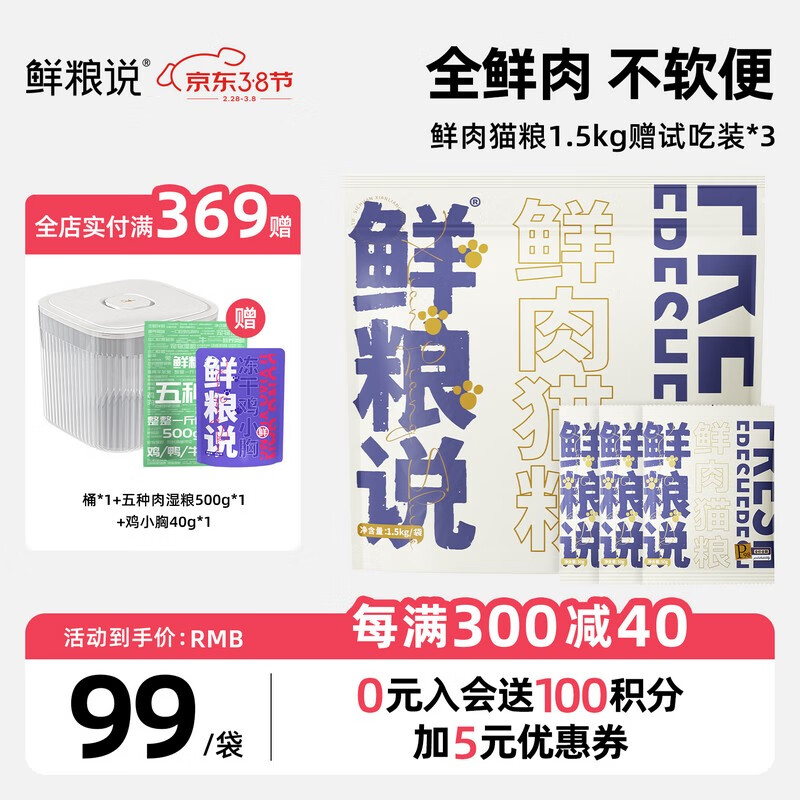鲜粮说蓝猫成幼猫益生菌防软便全价鸡肉鲜肉冻干主食低敏无谷猫粮 鲜肉猫粮3斤赠试吃装*3