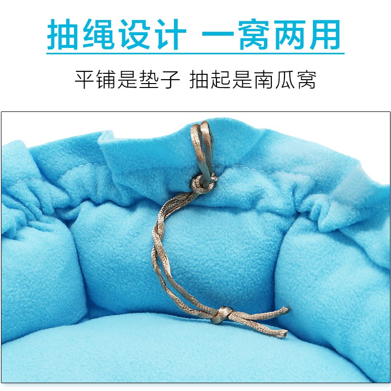 狗窝猫窝四季通用可洗棉窝垫子泰迪比熊中小型犬南瓜窝宠物用品 蓝色纯色 小号
