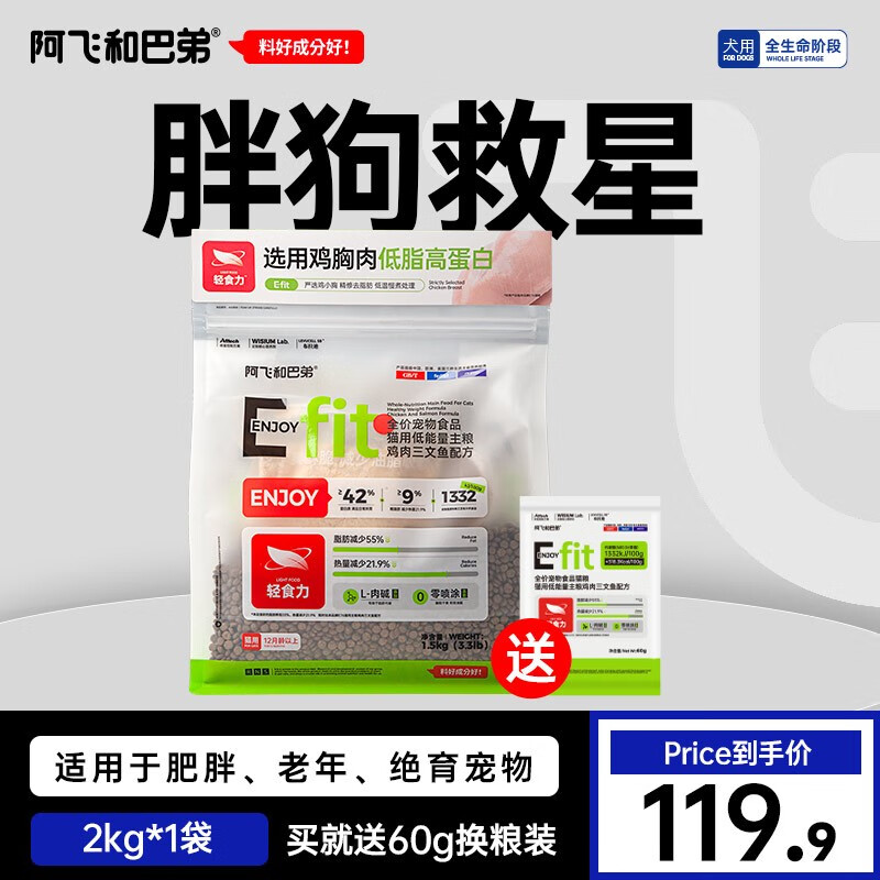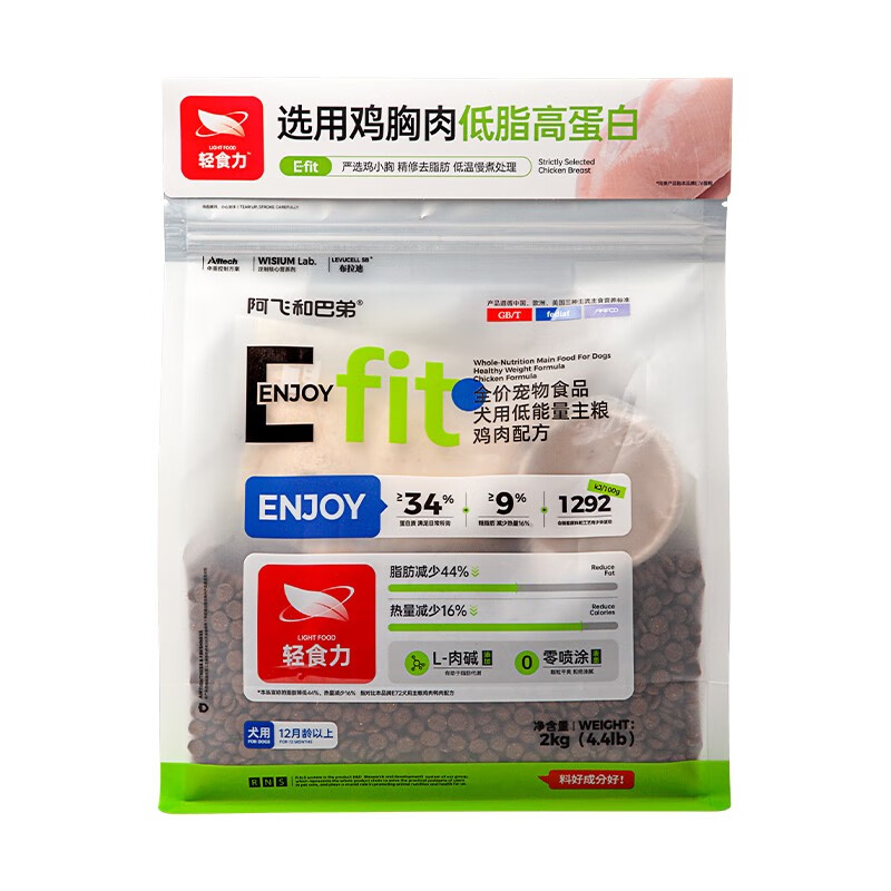 阿飞和巴弟E-Fit低卡狗粮低脂犬粮减肥易消化控制管理体重绝育 1袋装2kg 送60g