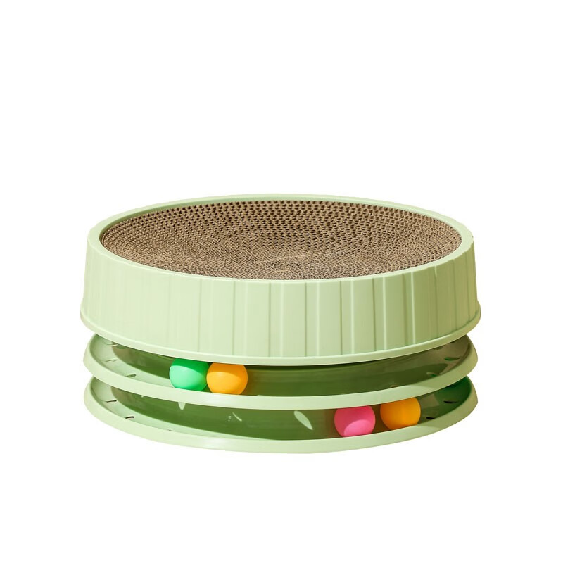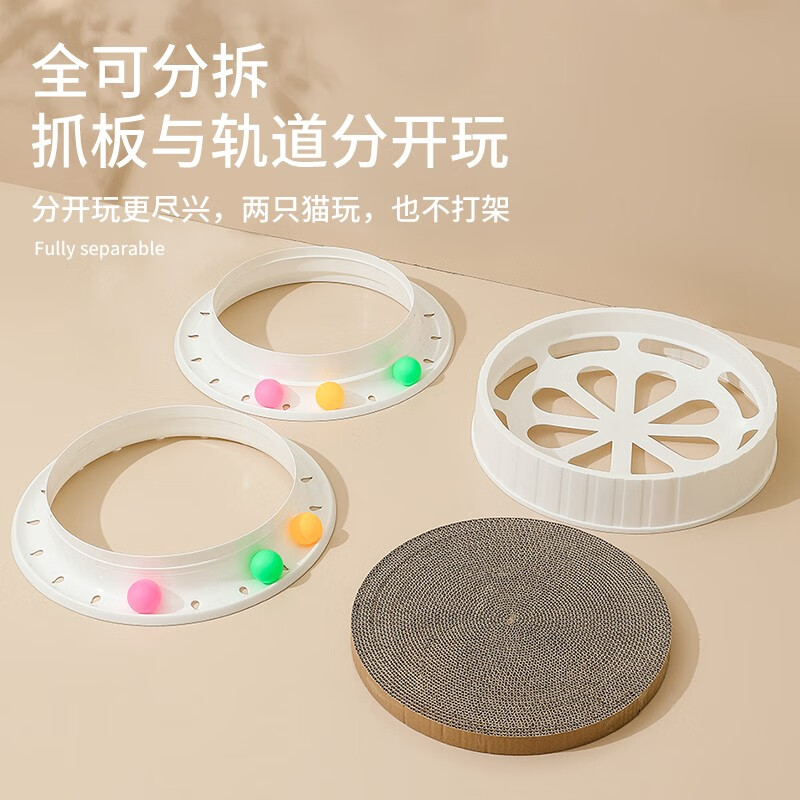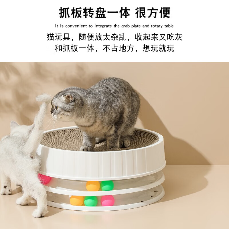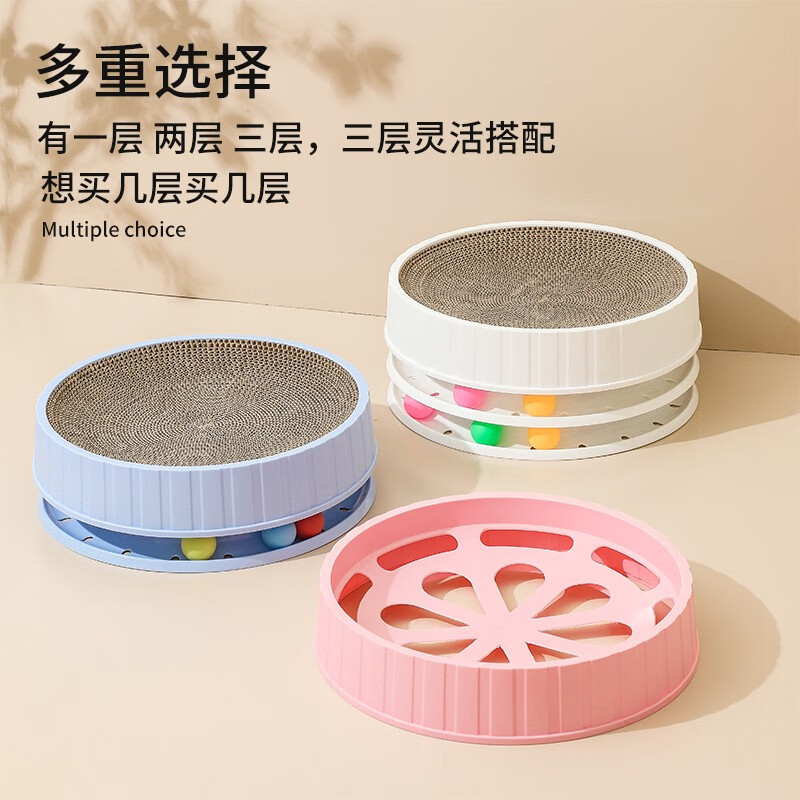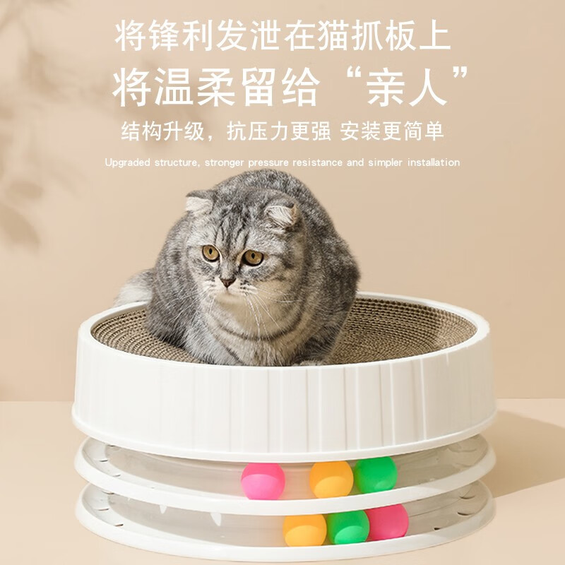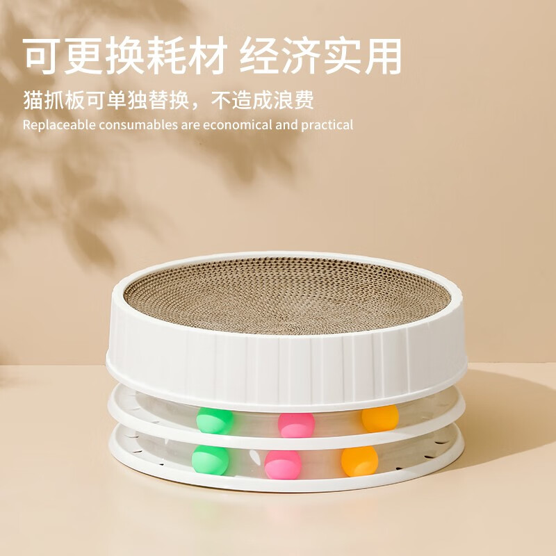 【自营时效】猫抓板猫窝一体逗猫耐磨耐抓猫玩具猫爪板窝盆磨爪圆形瓦楞纸可替换猫球猫抓盆猫咪用品 玲小宠 米白色 猫爪盆三层款