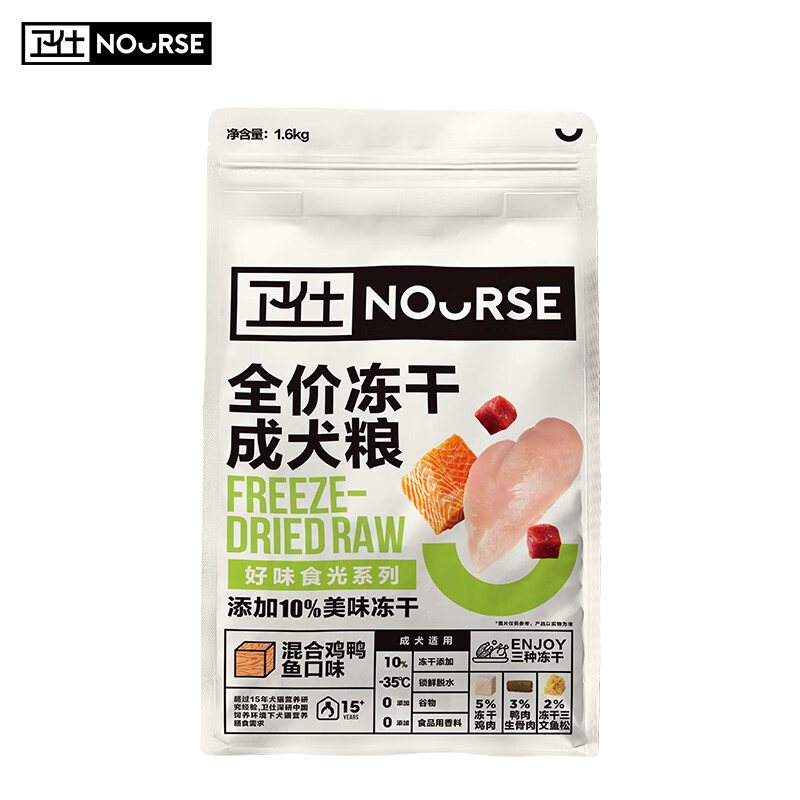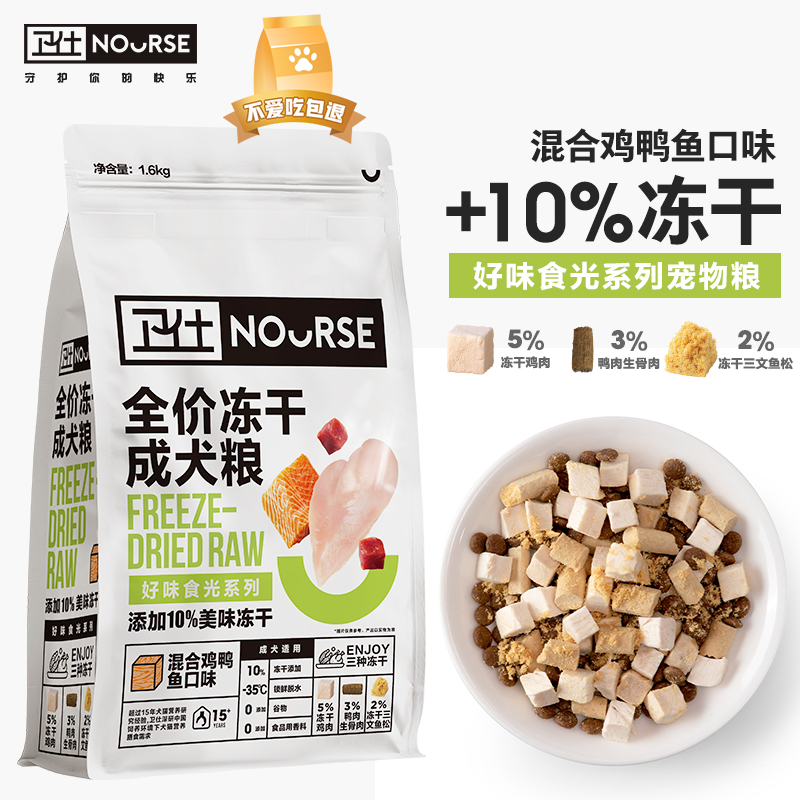 卫仕 三拼冻干混合鸡鸭鱼味成犬粮1.6kg(好味时光系列)