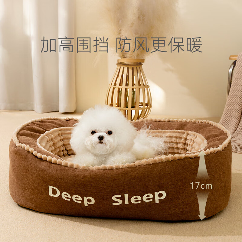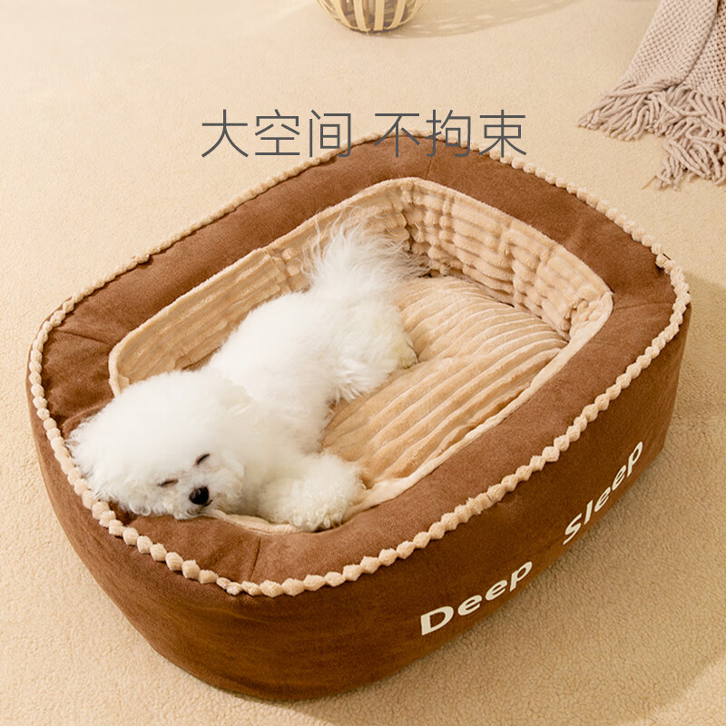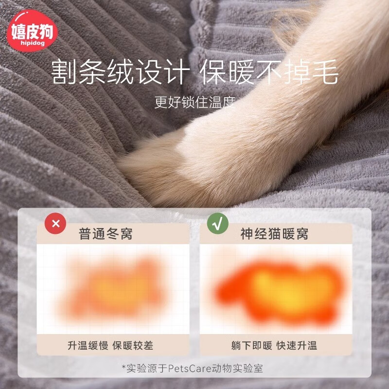 嬉皮狗 狗窝冬季保暖狗狗床可拆洗冬天狗垫子网红猫窝床四季用宠物用品 灰色防寒厚窝 大号:90*70*21cm(50斤内)