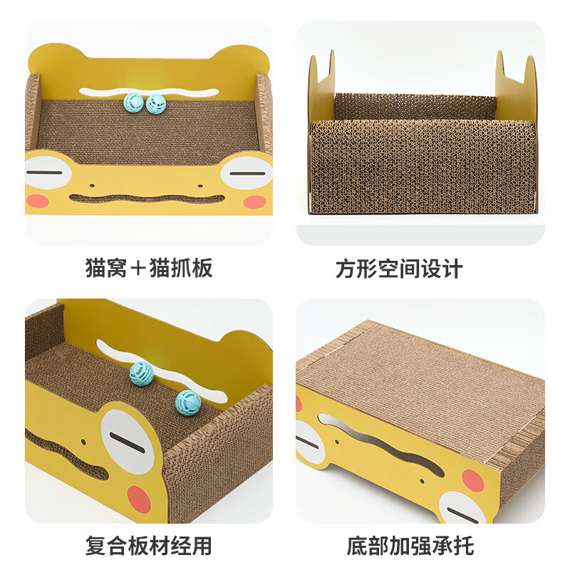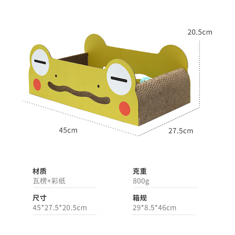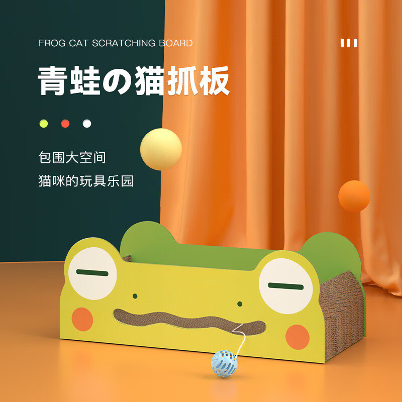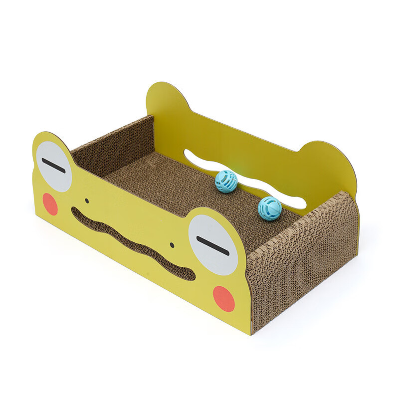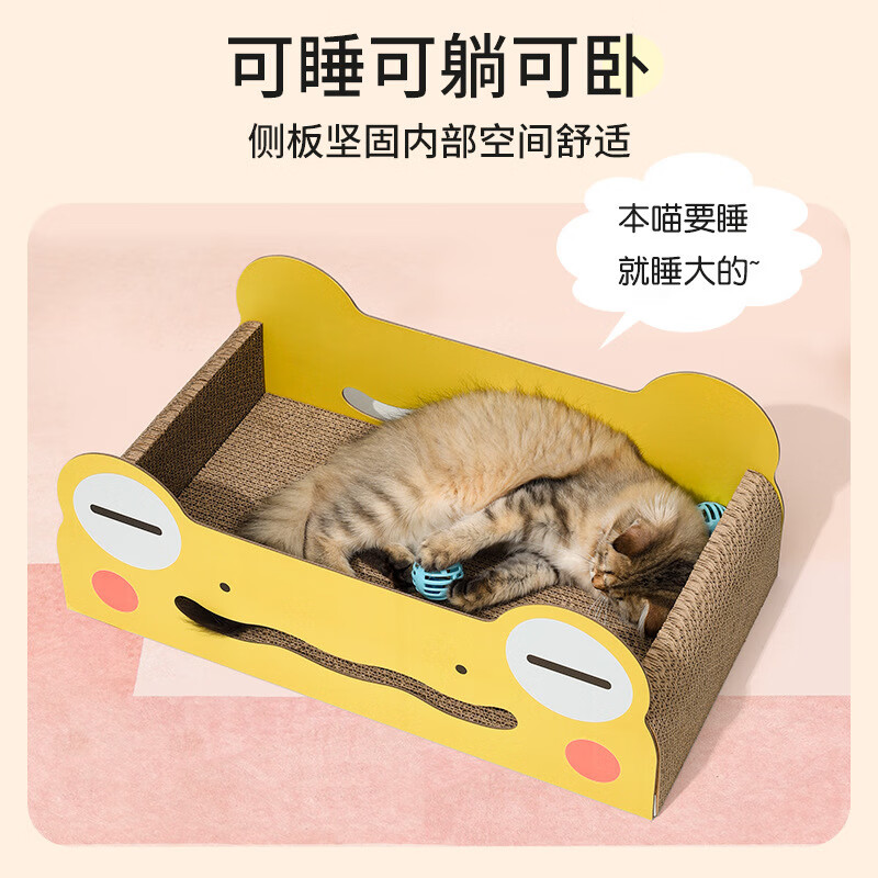 大眼蛙猫抓板猫窝一体瓦楞纸耐抓不掉屑带铃铛球宠物猫抓板猫玩具 大眼蛙S(适合8斤内)