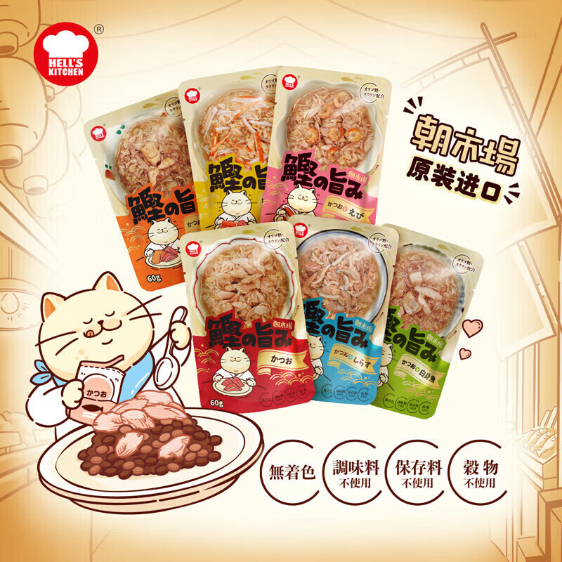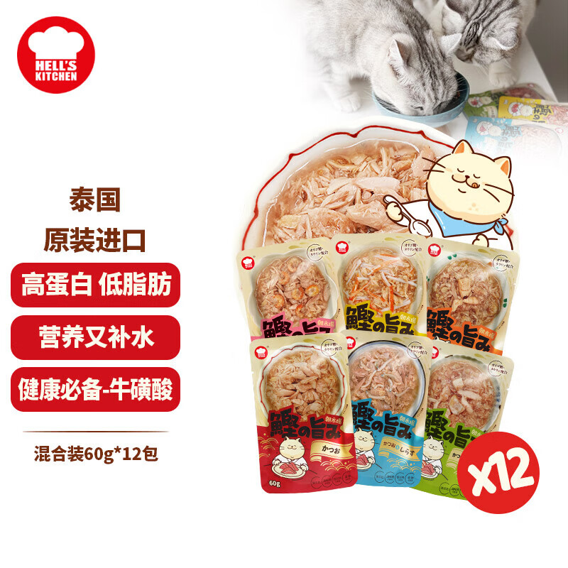地狱厨房(Hell's Kitchen)泰国原装进口妙鲜包猫咪湿粮补水餐包软罐头零食鲣鱼混合装60g*12