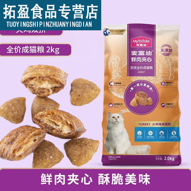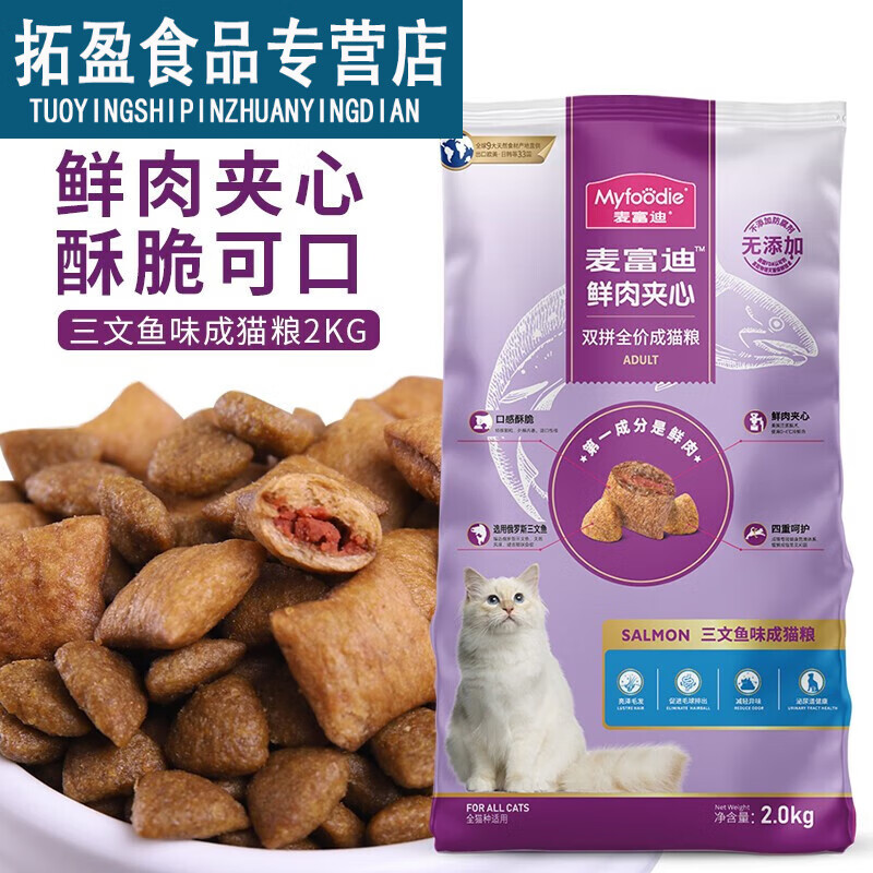 麦富迪(Myfoodie)麦富迪三文鱼火鸡鲜肉夹心猫粮成幼猫老年猫折耳英短美短全价粮通 三文鱼鲜肉夹心成猫粮2kg