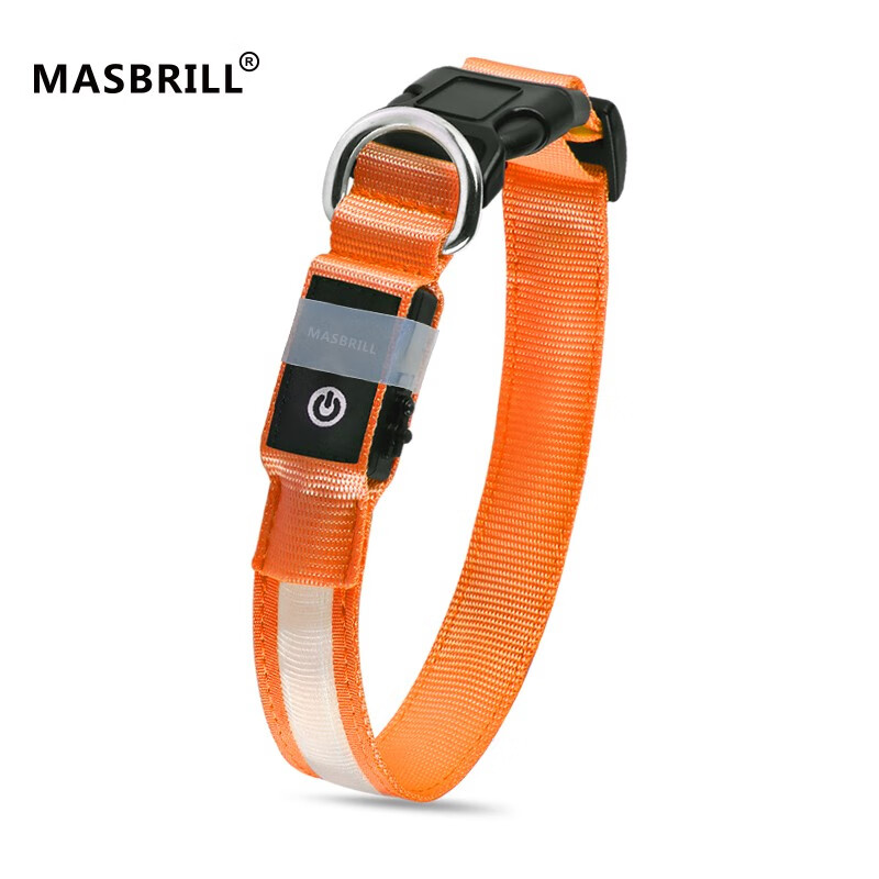 玛思贝瑞(MASBRILL)狗狗项圈 发光脖套 中大小型犬小狗拉布拉多泰迪柴犬金毛宠物用品脖圈 橙色 M 适用颈围33-50cm