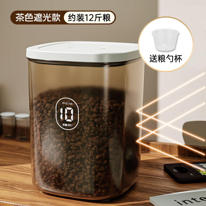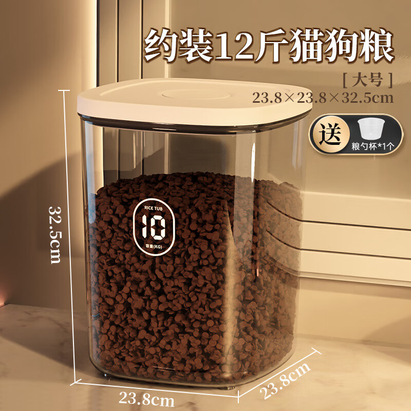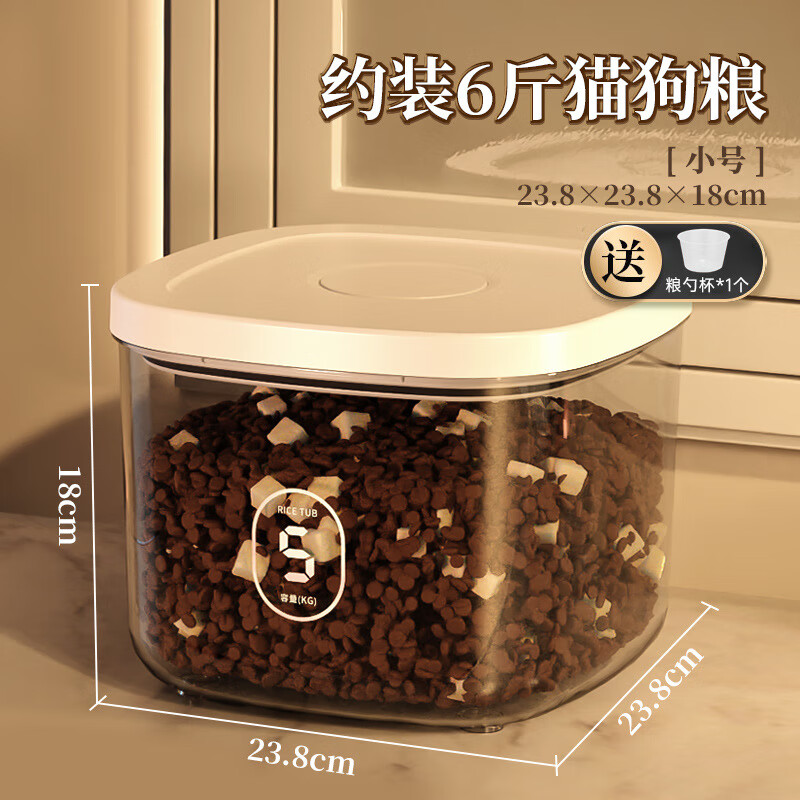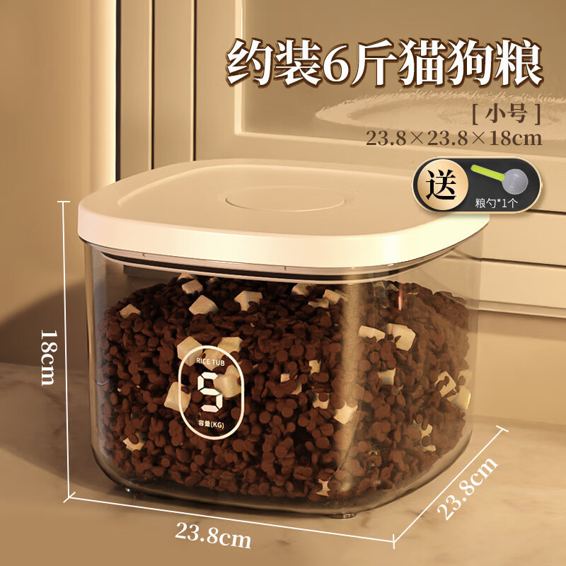 同心惢真空储粮桶猫粮狗粮桶大容量密封罐防潮宠物粮食箱家用猫咪食品盒 小号(透明款)