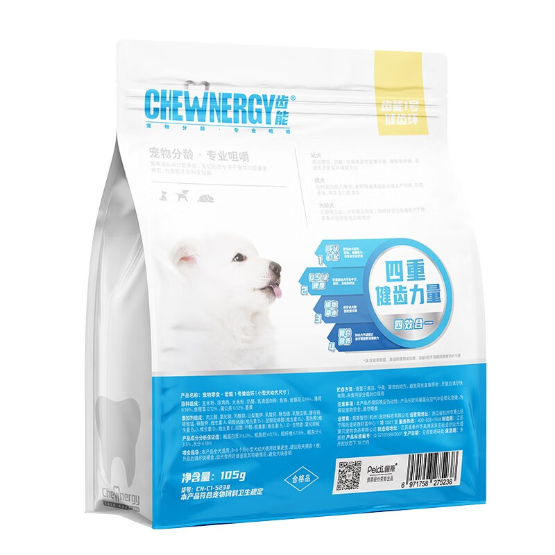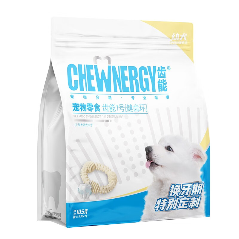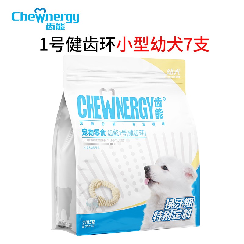 齿能(CHEW NERGY)狗零食 幼犬换牙期狗狗健齿环磨牙咬胶骨头小型犬耐咬洁牙洁齿环 【小型犬幼犬】小号7支装
