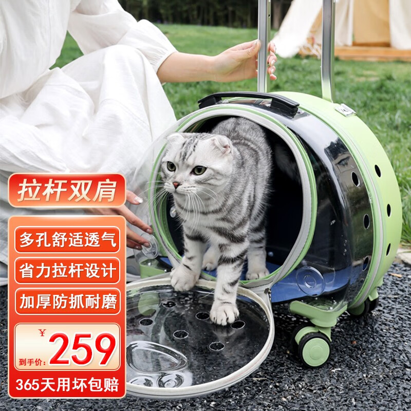 大海边宠物拉杆箱猫咪外出航空箱猫包旅行箱万向轮太空舱超大便携行李箱 【半透明】绿色