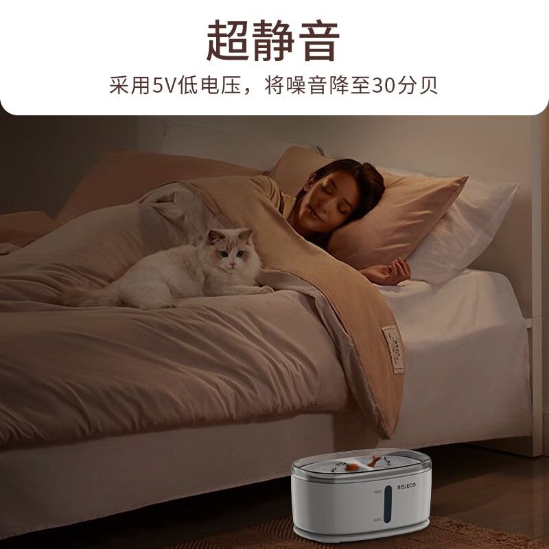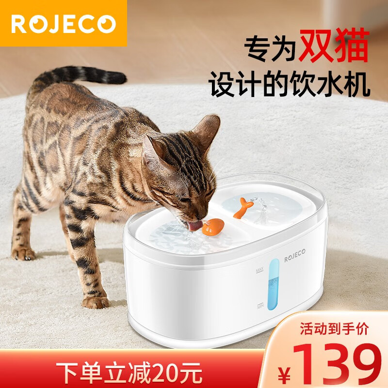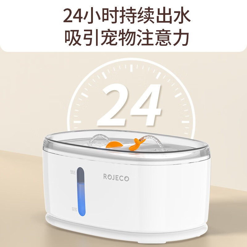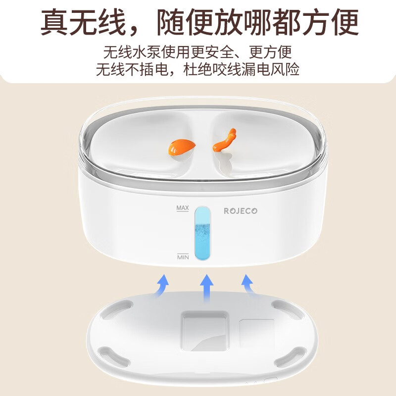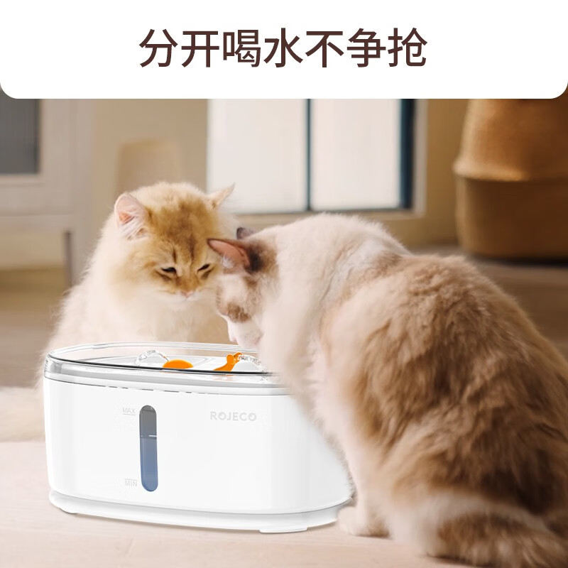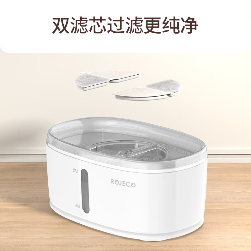 ROJECO猫咪饮水机宠物喂水器 自动循环过滤 无线水泵双猫出水口多宠适用 双猫出水口(无线款插线底座)