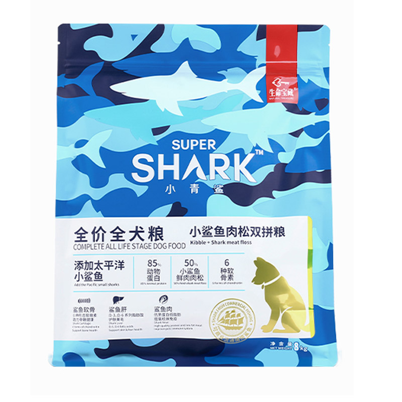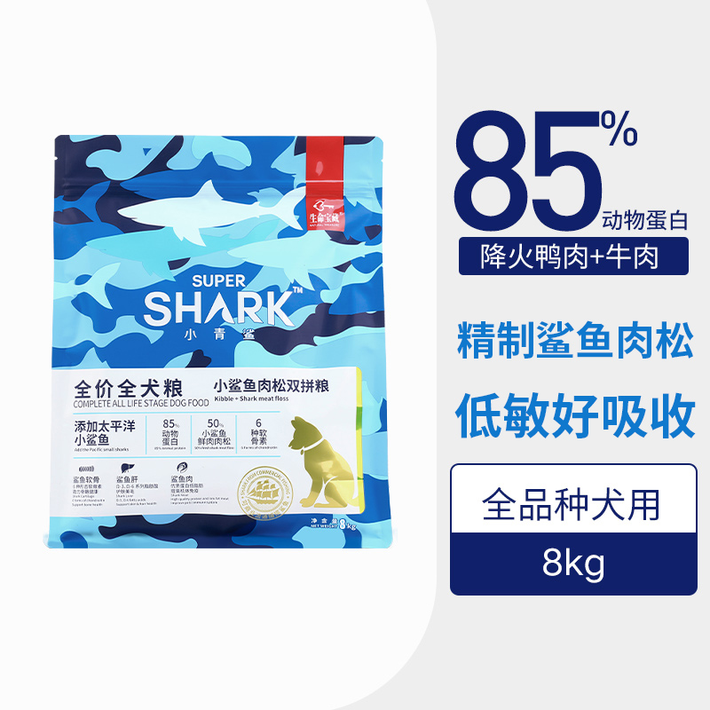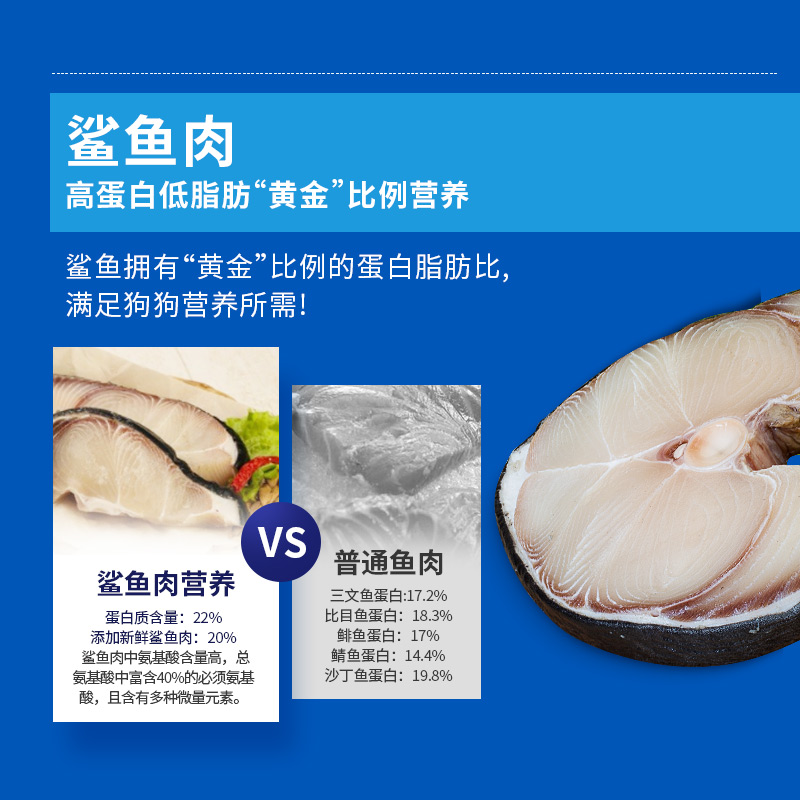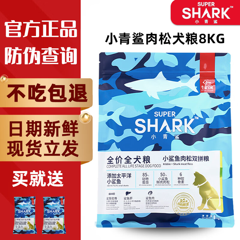 小青鲨狗粮全阶段主粮肉松舒泪菌肠活菌泰迪金毛小型犬大型犬冻干双拼粮 天然肉松全期犬粮8kg