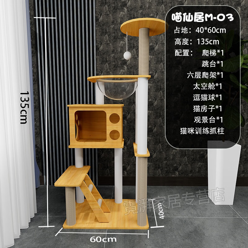 猫爬架子猫窝猫树一体实木猫抓板剑麻猫架笼子高层城堡跳台太空舱 【两口-瞭望平台】喵仙居M-03
