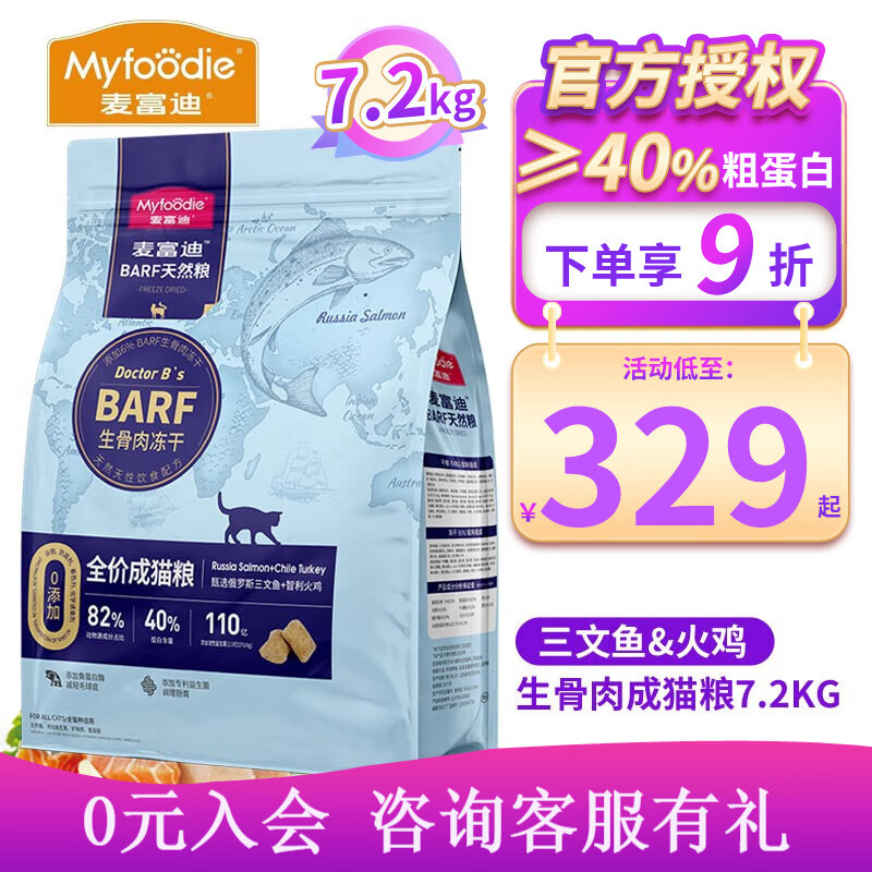 麦富迪猫粮 BARF生骨肉冻干双拼天然粮鲜肉无谷高肉高蛋白 成猫粮7.2KG(三文鱼