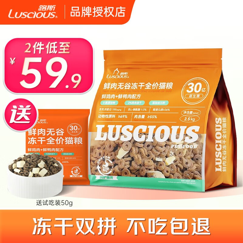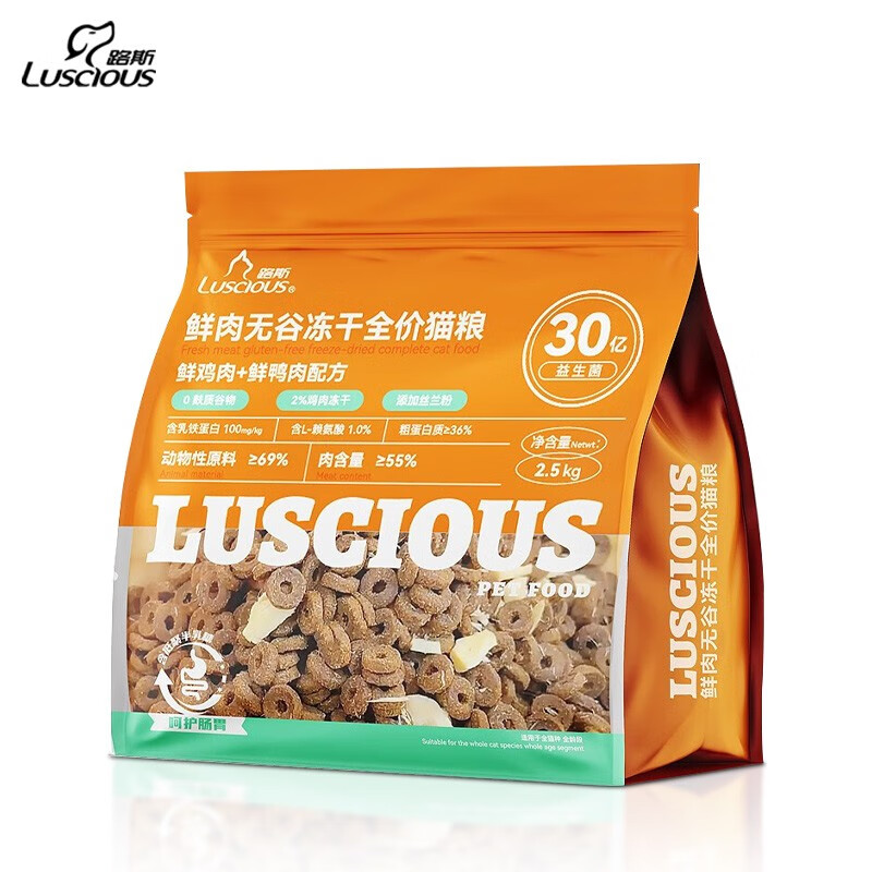 路斯(Luscious)双拼生鲜鸡肉冻干全阶段猫粮成猫幼猫蓝猫布偶高肉营养 无谷鲜肉冻干 全价猫粮2.5kg