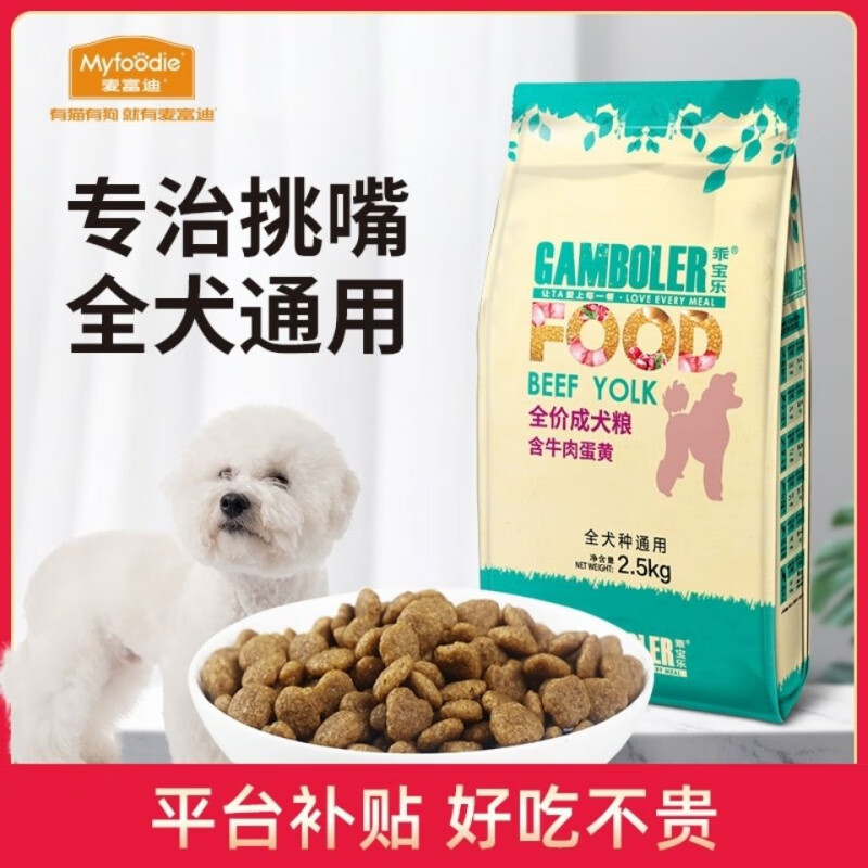 麦富迪(MYFOODIE)狗粮乖宝乐成犬幼犬粮牛肉2.5kg金毛拉布拉多通用型5斤 5斤装【1袋】 牛肉 蛋黄成犬粮