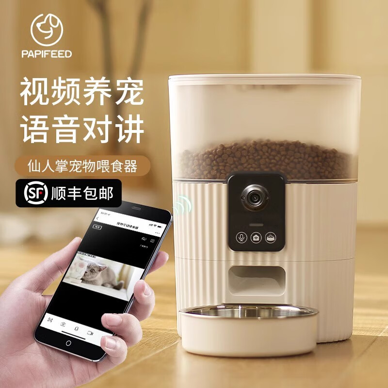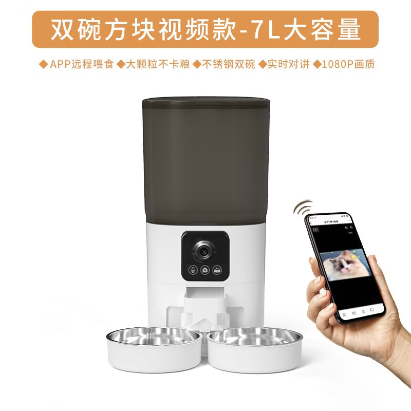 PAPIFEED自动喂食器猫咪可视频语音互动投喂器1080P监控宠物wifi定时定量 双碗方块视频款7L-(支持5GWiFi)