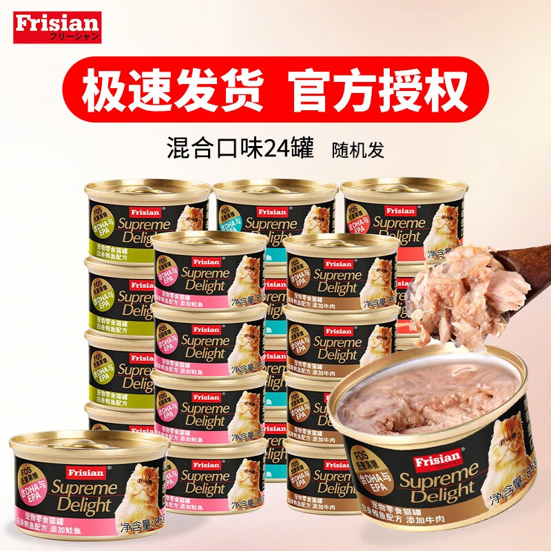 富力鲜(frisian)猫罐头鲔鱼罐头成猫幼猫猫咪零食拌粮湿粮 经典口味混合24罐
