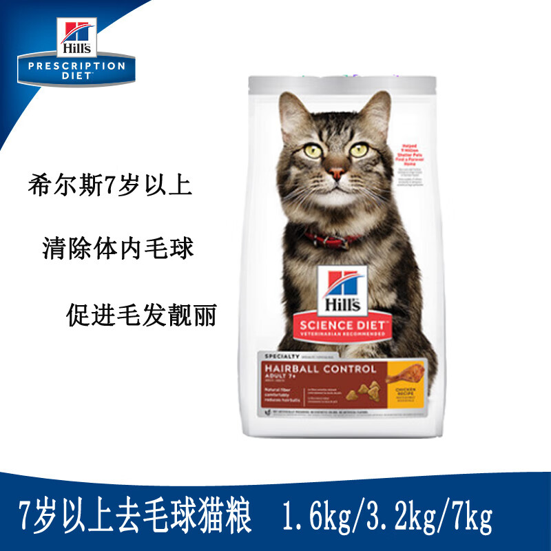 希尔斯猫粮老猫高龄猫粮 老年猫 7岁以上老年猫粮1.5kg 7岁去毛球7磅 0g