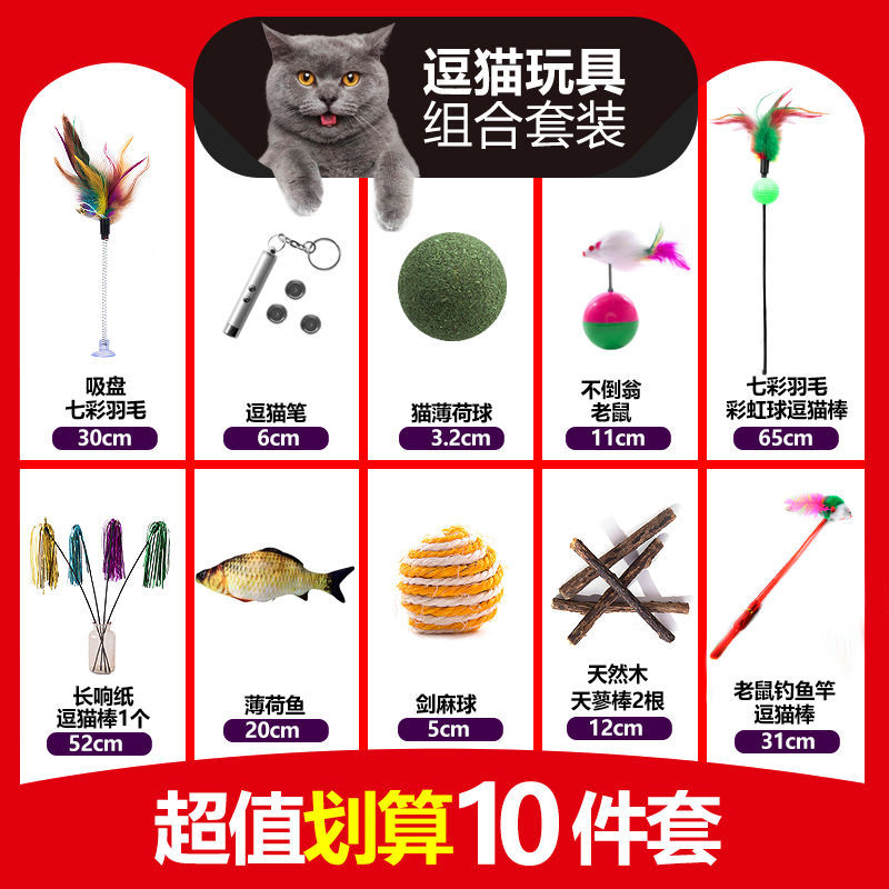 猫玩具套装自嗨激光逗猫棒薄荷鱼不倒翁老鼠解闷猫咪宠物用品 【趣味超值】十件套