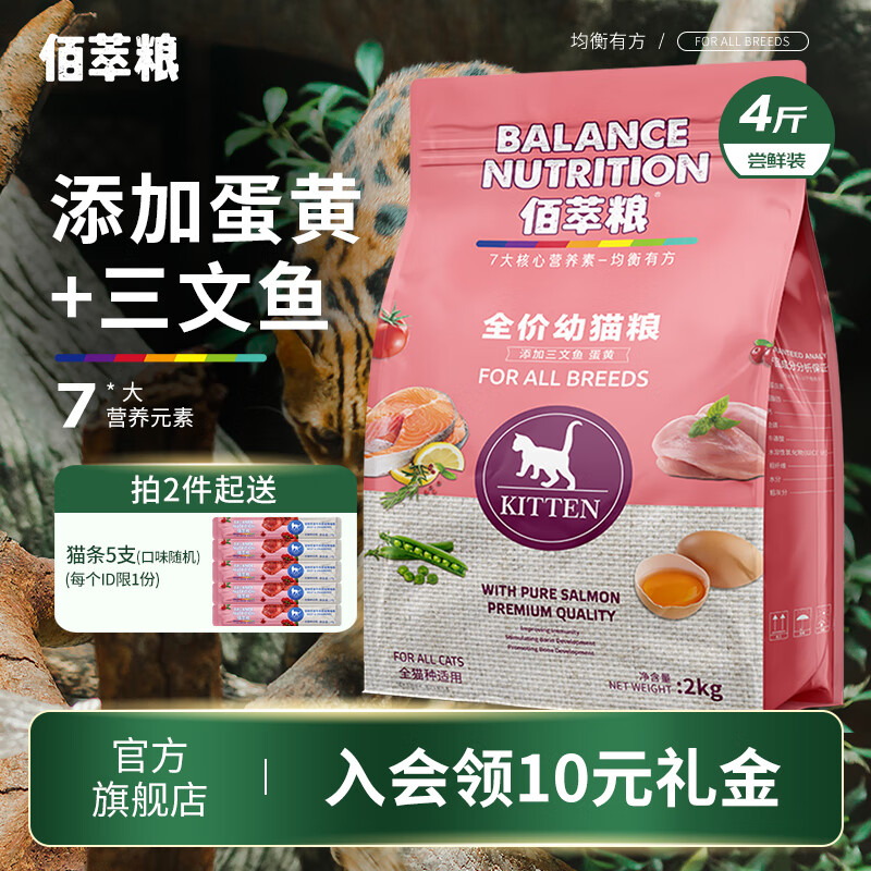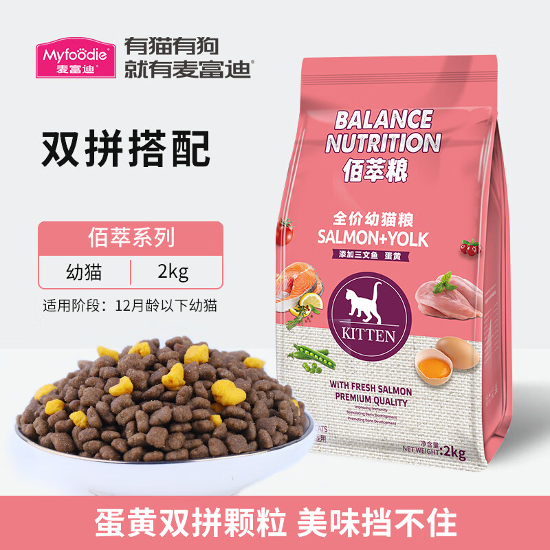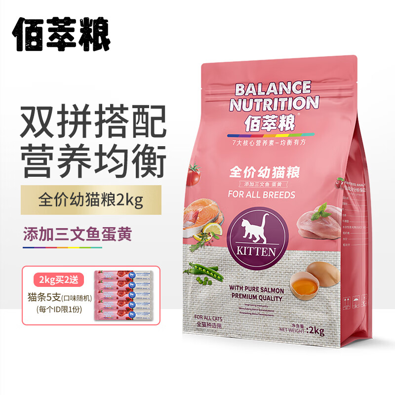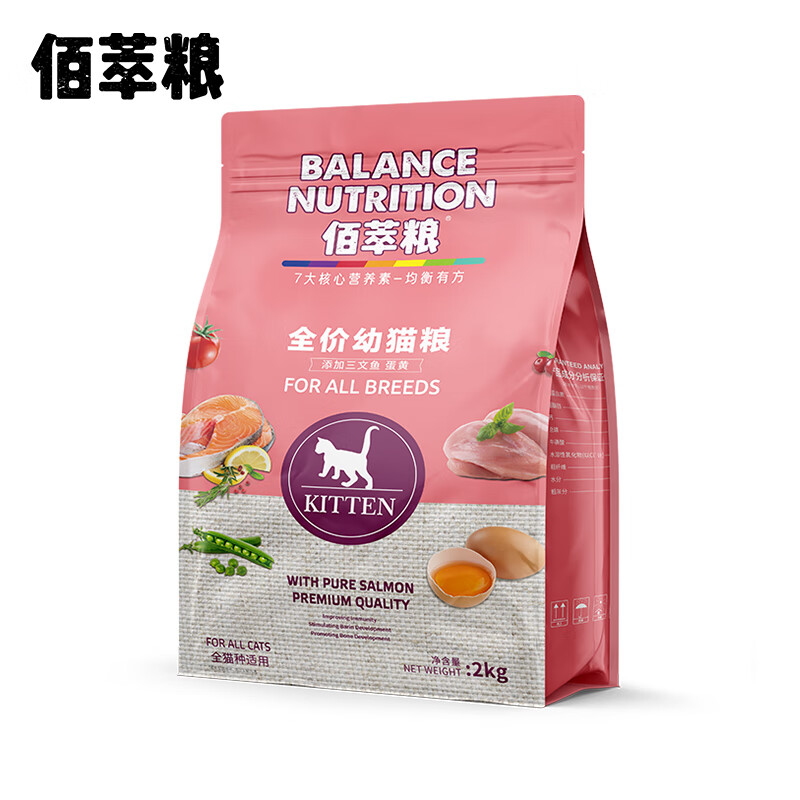 佰萃粮猫粮 蓝猫美短波斯猫咪通用三文鱼蛋黄猫干粮天然粮 幼猫粮2kg