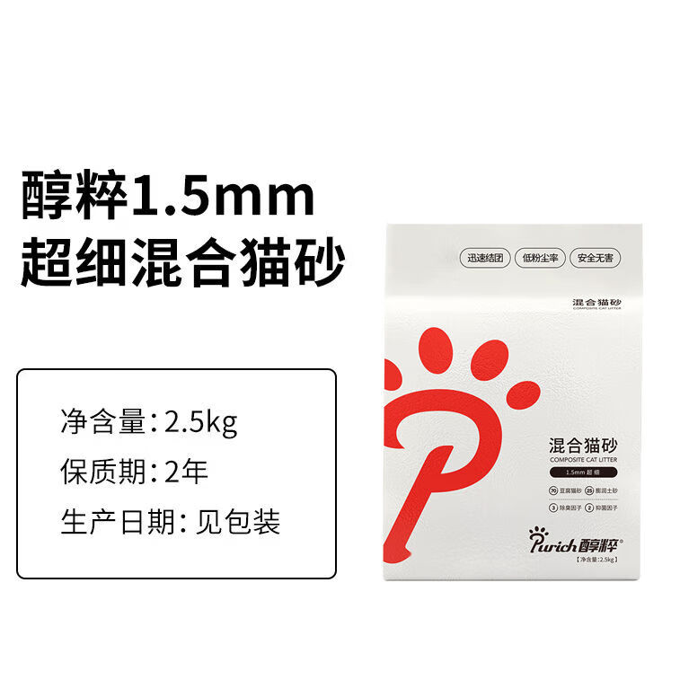 醇粹(Purich)混合豆腐猫砂100斤装豆腐膨润土混合猫沙批发防臭低尘5斤20斤 原味混合豆腐猫沙-5斤