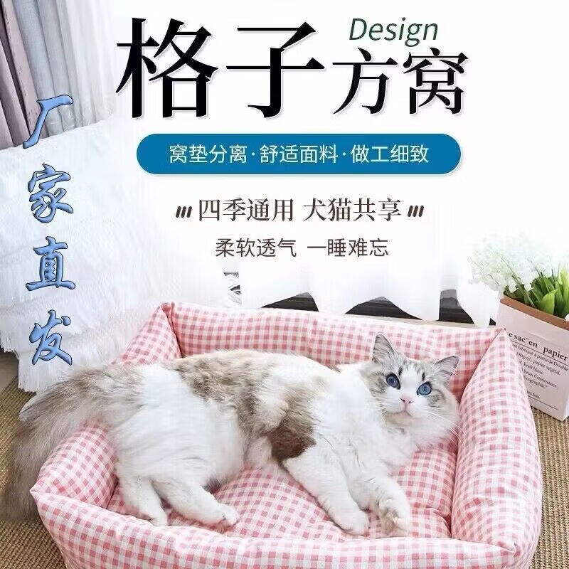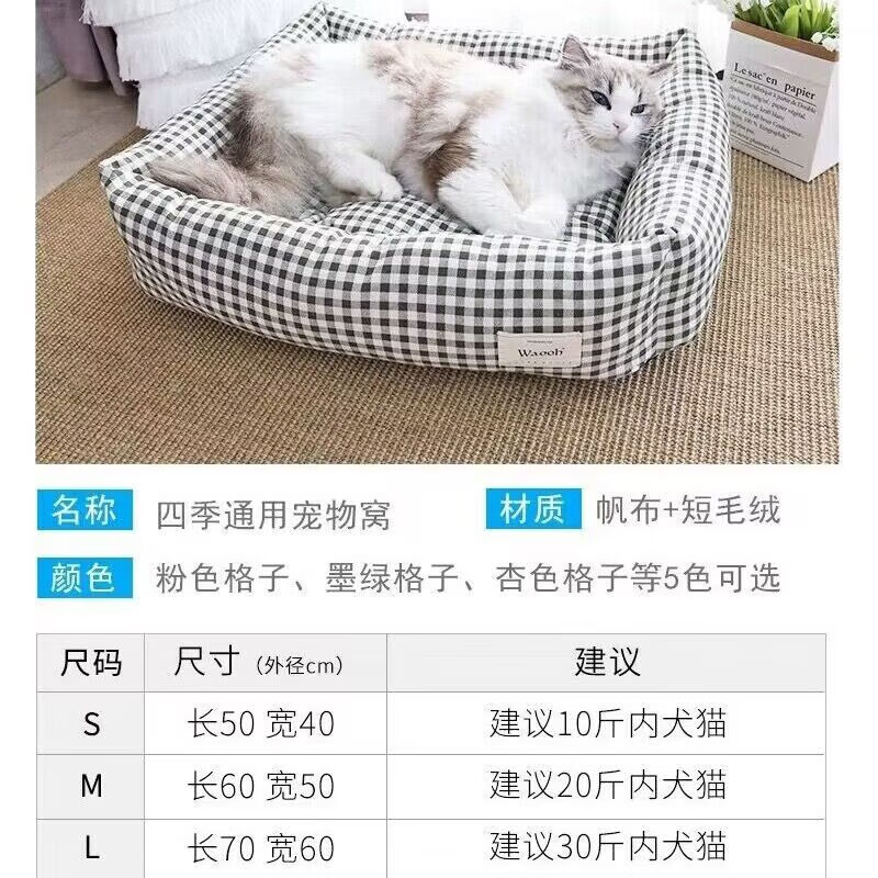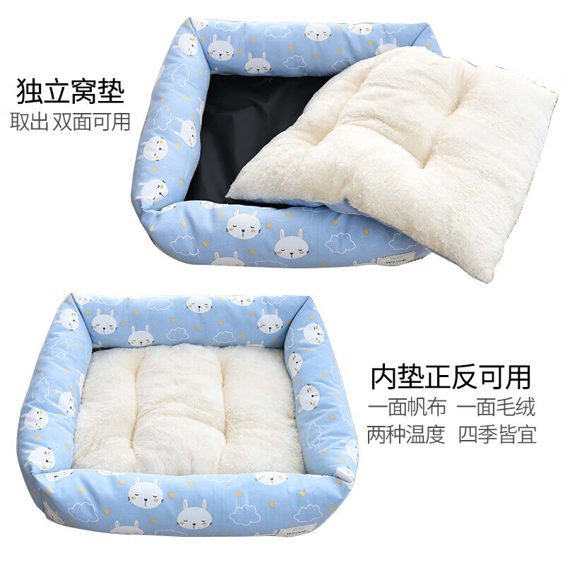 四季帆布狗窝春季室内通用宠物窝法斗狗狗睡垫猫窝小型犬窝猫垫子 蓝色萌兔 M 50*60 建议13-16斤内猫犬