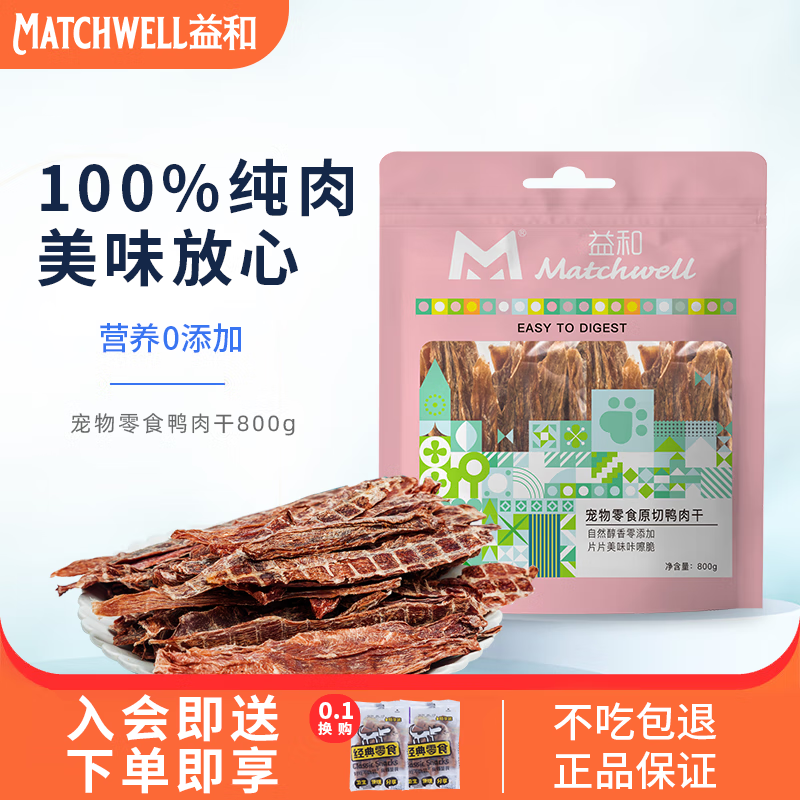 益和(MATCHWELL)狗零食小型犬烘焙鸡肉干宠物鸭肉干泰迪幼犬磨牙棒大型犬奖励 原切鸭肉干800g