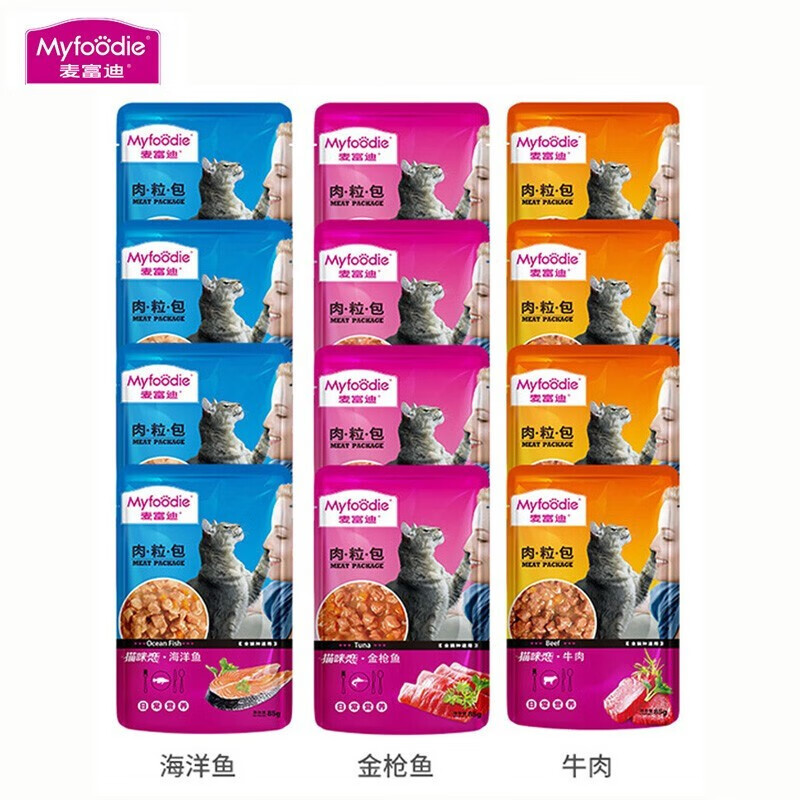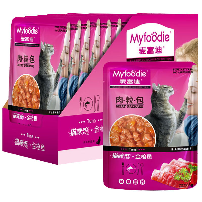 麦富迪猫咪湿粮 猫咪零食 成幼猫零食拌饭妙鲜肉粒包 金枪鱼味(85g×12袋)